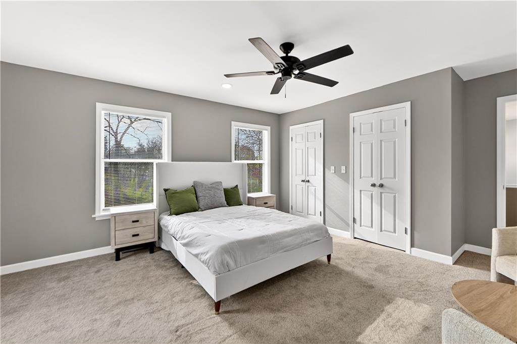 FRESH, MODERN, and made for living well. This fully updated reverse ranch checks ALL the boxes—and then some. With 5 true bedrooms plus a 6th non-conforming bedroom, there’s room for everyone to spread out, settle in, and stay awhile. Step inside to an open-concept main level designed for connection, comfort, and unforgettable gatherings. The kitchen shines with brand-new custom cabinetry and a statement island—your hub for holiday baking, Sunday brunch, or midnight snacks. The dining and living flow seamlessly, creating a welcoming space framed by warm finishes and natural light. Step out to enjoy peaceful moments overlooking the backyard from the new elevated deck. Just off the kitchen, retreat to your private primary suite—tucked away from the rest of the home for total tranquility. Cozy up by your fireplace, and unwind in the new spa-style en suite with stylish tile surround. The main level continues with three additional spacious bedrooms and a beautifully updated full bath. Head downstairs to discover even more living space—a dedicated media area for movie nights, a large bedroom, a full bathroom and an additional expansive family room with abundant natural light that could be used as a bonus non-conforming bedroom perfect for guests or even enough space for a home studio, the possibilities are endless! This room also walks out to a covered patio with recessed lighting, offering your own secluded outdoor hangout for breezy evenings and backyard lounging. With thoughtful updates, a brand new roof, flexible living spaces, and plenty of room to live, work, and play, this home delivers modern comfort, peace of mind and effortless versatility for every lifestyle while offering privacy for the whole family! With remarkably quick access to highways in a convenient location next to the heart of Kansas City's sport action, you won't want to let this one get away! This home looks even better in person! Schedule a showing today!