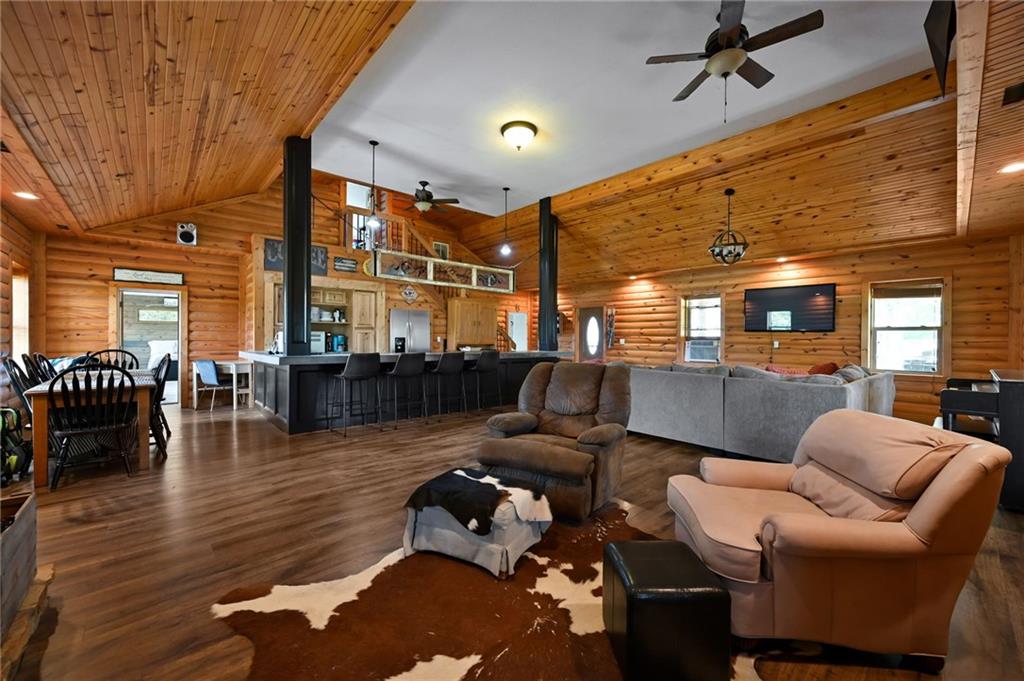 Welcome to Top of the World! Featuring 4 Seperate Living Spaces and Venue on this Sprawling 50+ acre estate nestled ontop of a bluff overlooking the arm of the Osage River and the town of Osceola. The event space offers a multitude of options from weddings, prom for the local school, men and womens retreats, cattleman's association dinner, baby showers, family reunions and more! The main home is 3 Bedrooms, 2 Baths with Great Room that is just that! Small House just on the back side of the main home, is 1 Bedroom 1 bath,with original ice house attached. Cabin 2 is 40x16 built in 2017 2 Bedrooms, 1 bath with side deck. Cabin 1 is 2 Bedrooms 1 bath with covered wrap around partial covered deck over pond . Venue has full kitchen, washer/dryers, storage, mens bathroom with 2 stalls, womens bathroom with 2 stalls, dressing agreas from men/women. Large covered patio and deck overlooking stocked pond. The property has Artesian well that provides the pond with fresh water. The main home has a 2 car detached garage that connects with breezeway. There are mulitple buildings on the property for storage and more. SEE MLS 2551256