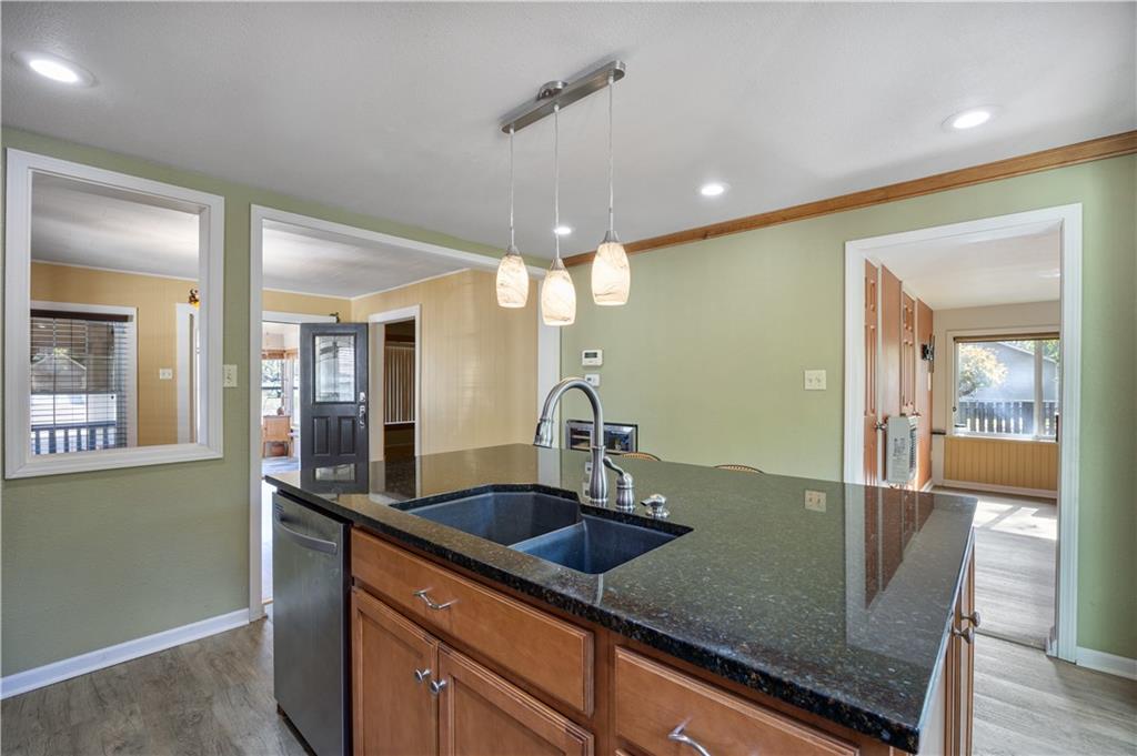 Step inside this timeless, well-appointed house, and you'll instantly feel at home! Nestled in with mature trees on an expansive 0.90 acre lot, conveniently located in the middle of town, this large 2-story residence and 3 car detached garage/shop are a rare find! Contemporary elegance blends with traditional, classic finishes throughout the 2,092 square feet of living space which boasts 3-bedrooms, 2-bathrooms, an office area, and great flex space that could be a 4th bedroom. Inside, enter through the front sunroom, and you'll find the spacious living area that flows into the kitchen and dining spaces, creating an inviting atmosphere for family and friends to gather. You’ll love the updated kitchen, showcasing solid wood cabinetry, granite countertops, stainless appliances, and a large center island. The office/den is right off the kitchen, and both rooms have sliding glass doors going out to the deck and patio area, which is complete with a hot tub and outdoor stone fireplace. There are bedrooms housed on both levels, each offering plenty of comfort and storage, and the beautifully updated bathrooms, one on each floor, add a touch of luxury to everyday living. While the home has had many cosmetic updates, it has had a plethora of practical updates as well -- the roof is less than one year old, a new tankless hot water heater was recently installed, and both HVAC systems are less than 5 years old. Outside, enjoy a fantastic backyard with two separated fenced areas —ideal for barbecues, play, gardening, or simply relaxing with plenty of room surrounding you. The garage has an attached shop area in the back, and a lean-to with double drive-through doors on the side, making it incredibly versatile for any of your needs. With so much to offer, and no shortage of curb-appeal, space, or functionality, this property is a dream!