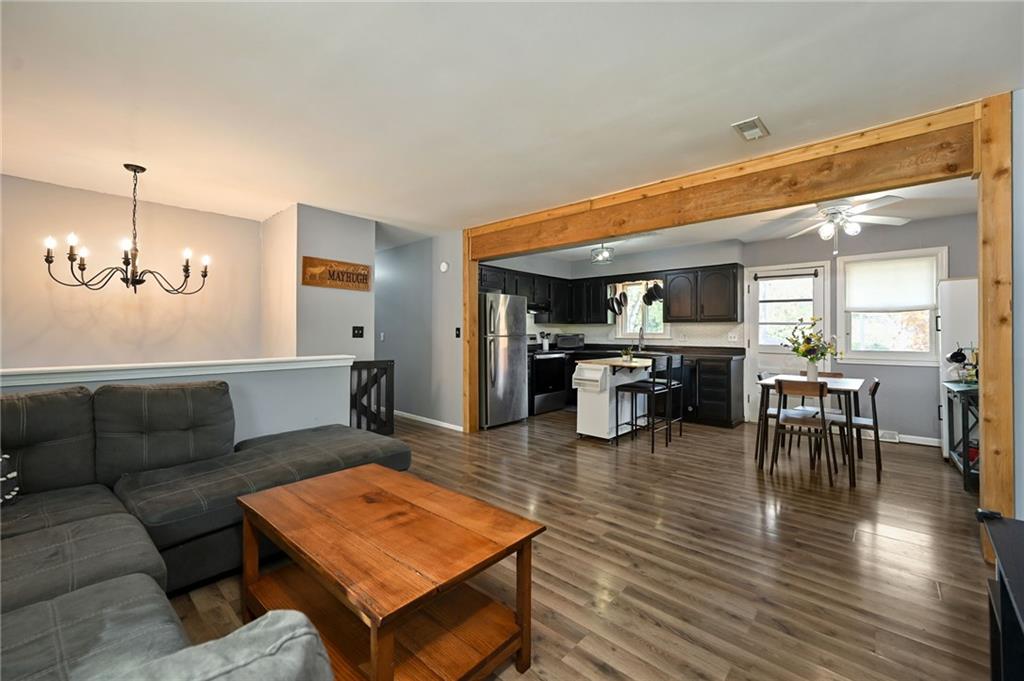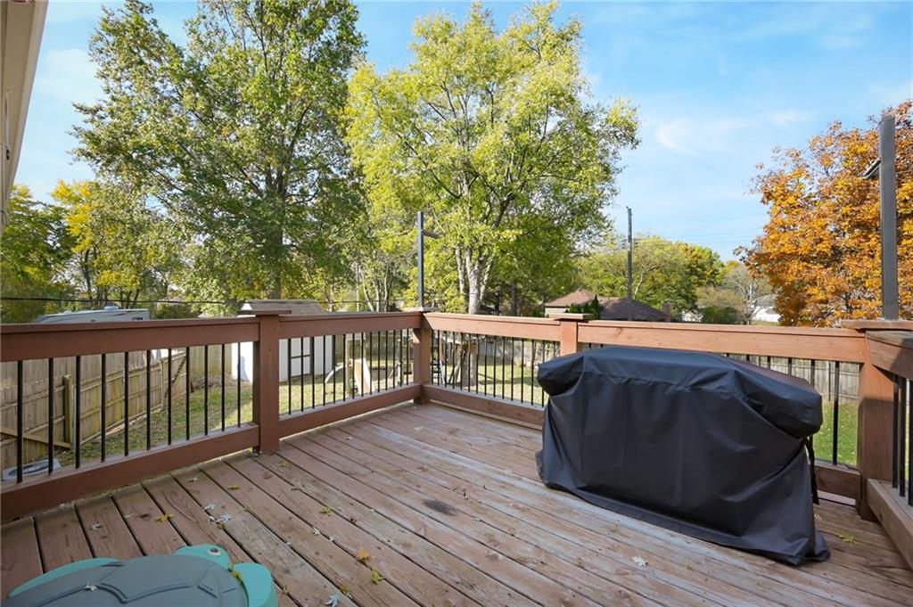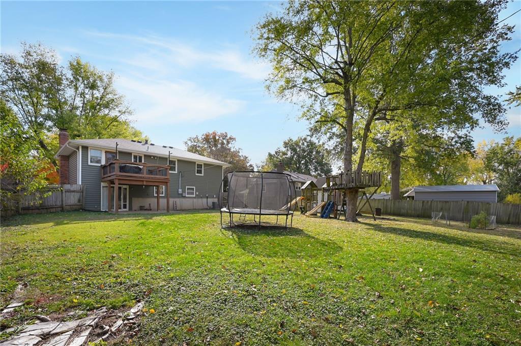 DARLING home located in heart of Raymore. Enjoy your cheery great room which opens up to kitchen for an open plan, filled with natural light (bonus: new Anderson windows), walks out to nice deck for those BBQs! Nice master bedroom, master bath with tiled walk in shower! Finished WALKOUT lower level which offers 4th non-conforming bedroom AND a man-cave OR family room with a cozy brick fireplace.Nice fenced backyard with shed! Great location! Take a stroll down to popular park for some family fun! Perfect home to make lots of memories!