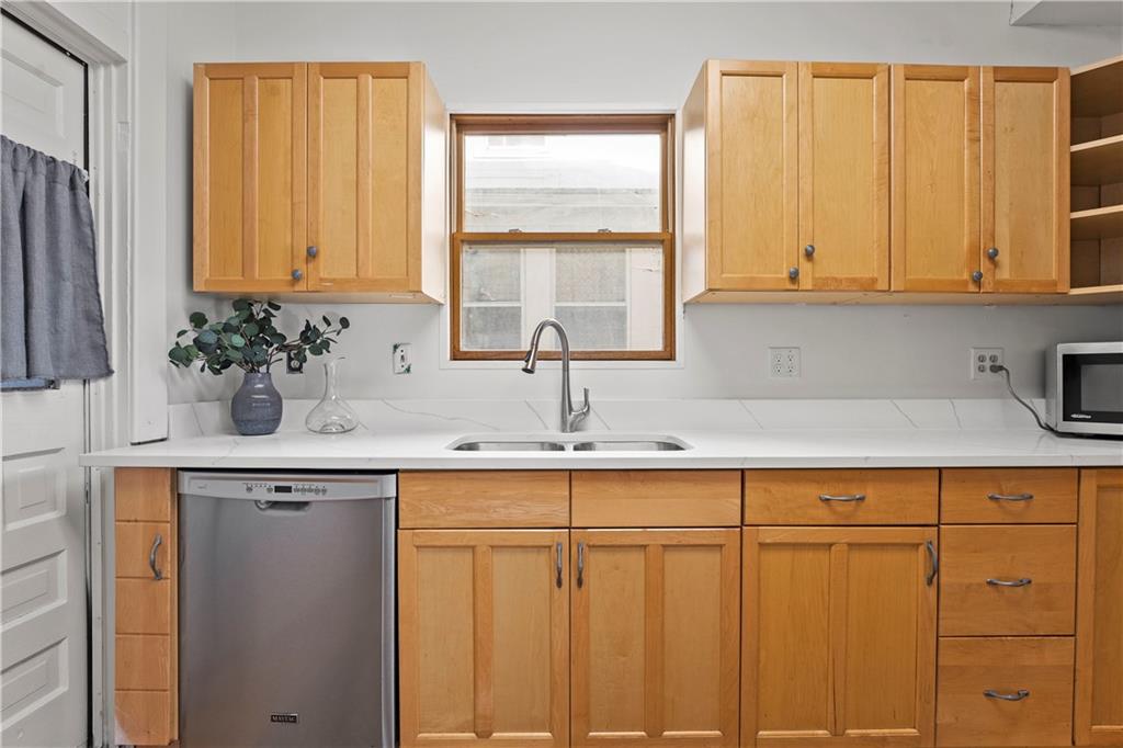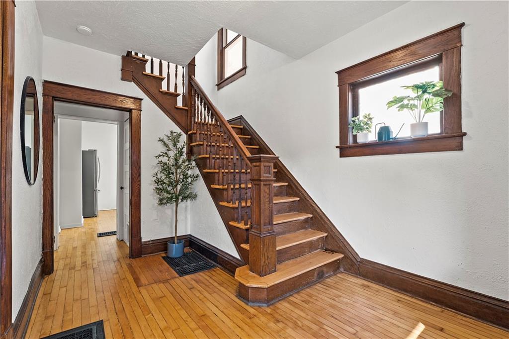 The timeless curb appeal of this early 1900s Kansas City shirtwaist starts with its front porch and detailed brickwork. New James Hardie Siding was installed to maintain the turn-of-the-century aesthetic. Inside, refinished original hardwoods stretch across the main level, setting the stage for the home’s historic charm. The grand staircase and formal entryway showcase the craftsmanship of the era. The main floor features a spacious living room with a green-tiled fireplace, a large dining room framed by a bay window with original trim, and a galley kitchen with brand-new countertops. An added full bathroom completes the first floor. Upstairs, you’ll find three well-sized bedrooms and an updated full bath, plus a partially finished attic—perfect for a playroom, office, or studio. Just steps from Volker shops and restaurants, this home blends historic character with modern updates and is ready for its next chapter.