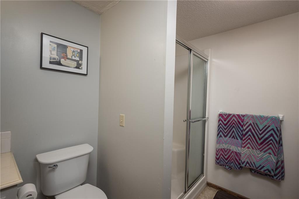 Beautiful ranch-style villa located in the highly sought-after Country Meadows North community. This home offers vaulted ceilings, an open eat-in kitchen, and an exceptionally large living room with a cozy fireplace. The main-level primary bedroom is spacious and features an en-suite bathroom with plenty of storage. All areas of the main level are easily accessible. The upper level includes an additional room with a large walk in closet, providing excellent guest, office or storage space. The finished lower level offers a versatile layout with an additional living area—perfect for entertaining, a home office, playroom, or hobby space—along with another full bathroom. A little personal touch and this home is a perfect opportunity to build equity. Enjoy a private deck backing to a wooded area, offering peace and privacy. Conveniently located near shopping, restaurants, and major highways for easy access to everything you need.