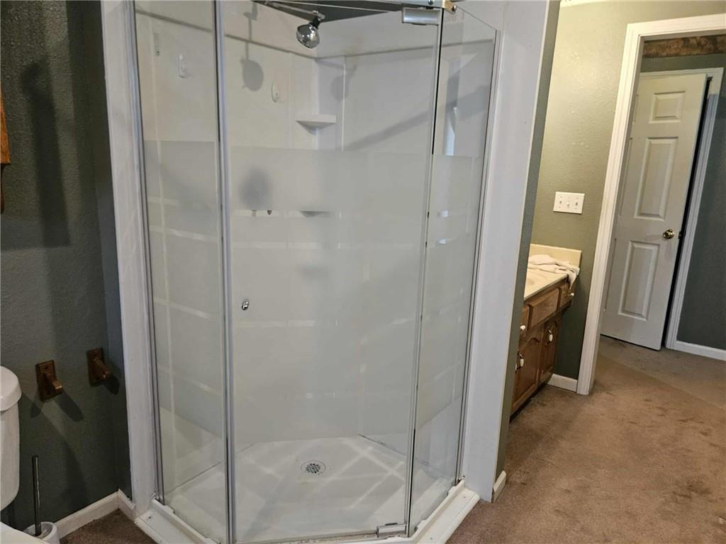 Spacious 2-story, 4 BR, 2.5 bath home on 30 acres, M/L. Main level primary bedroom w/walk-in closet & primary bath. Roof new 2025. Updated vinyl windows (some broken glass). Bsmt. for storage & storm safety. Whole house reverse osmosis water system. 2 separate heat/air units for efficiency & comfort. Pecan & apple trees, fenced pasture, fenced yard, large 2-car det garage. Hardwood under carpet in DR. Bandera stone fireplace w/insert in LR. Outside hydrants for gardening & livestock water. Round pen for horse lovers. Some water spot damage on ceilings from before new roof was added. Red & white storage building will be removed. Property sells AS IS. A great opportunity for buyer.