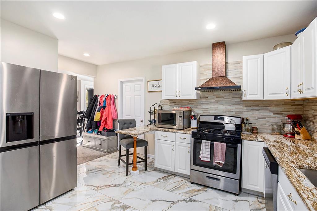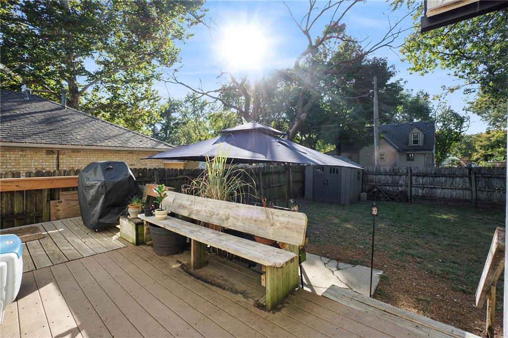 Charming, updated farmhouse in the heart of town! This 3-bedroom, 3-bath 1.5 Story Home blends character and modern comfort from the moment you step through the front door. One of the oldest homes in Louisburg, it has recent major updates including NEW Roof 2 years, HVAC system and water heater 4 years ago!!! The open main level features a light-filled living and dining space with neutral tones and cozy carpet, flowing easily into the kitchen. You’ll love the stylish updates — white cabinetry, granite counters, tile backsplash, and sleek stainless steel appliances. Upstairs, spacious bedrooms offer warmth and charm, with unique ceiling angles and large windows bringing in natural light. Both bathrooms are beautifully maintained, with clean finishes and thoughtful storage. Step outside to enjoy a private fenced yard, perfect for gatherings or playtime under the shade of mature trees. A large deck provides plenty of room for grilling or relaxing, and there’s a shed for added storage. With its inviting front porch, modern updates, and convenient location near shopping, dining, and parks — this home is the perfect mix of classic charm and everyday functionality!