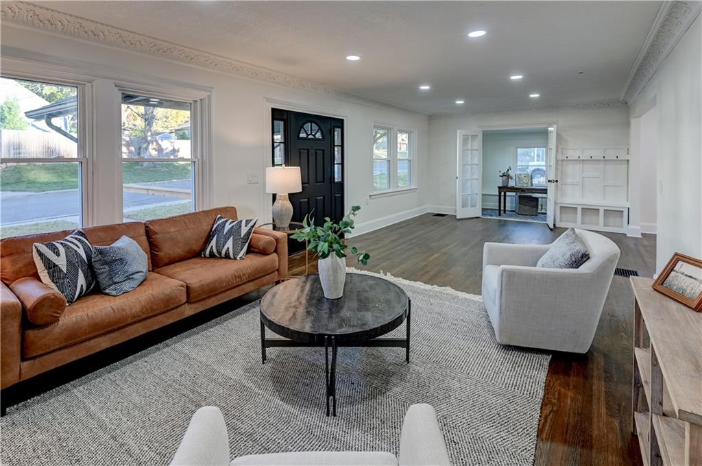 Fully remodeled 1920s charmer blending timeless character with modern luxury, listed $25,000 under recent appraisal! Step through the front door and feel the character of the 1920s brought back to life with thoughtful updates throughout. Nearly every inch of this home was taken down to the studs, with the exception of the front living room intentionally preserved to maintain the original 1930s plasterwork and fireplace design. That space flows seamlessly into the restored front office with refinished original doors, opening to an expansive, bright dining, living, and kitchen area perfect for entertaining. Major system upgrades include completely new electrical (no knob & tube), all new plumbing including main stack. Newer roof, siding, and windows (all approx. 2 years), plus restored hardwood floors, new front patio, new oversized deck, and all-new kitchen, bathrooms, appliances, fixtures, sheetrock, insulation, and paint. The brand-new primary suite offers generous space and comfort while honoring the home’s vintage charm, and every finish was selected with care. The fully finished lower level provides flexible living as a guest suite, in-law setup, or Airbnb income opportunity, featuring its own private entrances for convenience and privacy. Outside, enjoy the massive new deck and extra-large lot that provide rare space and breathing room for Roeland Park. This home is a hidden gem—classic character on the outside, all-new modern living on the inside—move-in ready, beautifully designed, and built to last and only a couple minutes from the plaza.