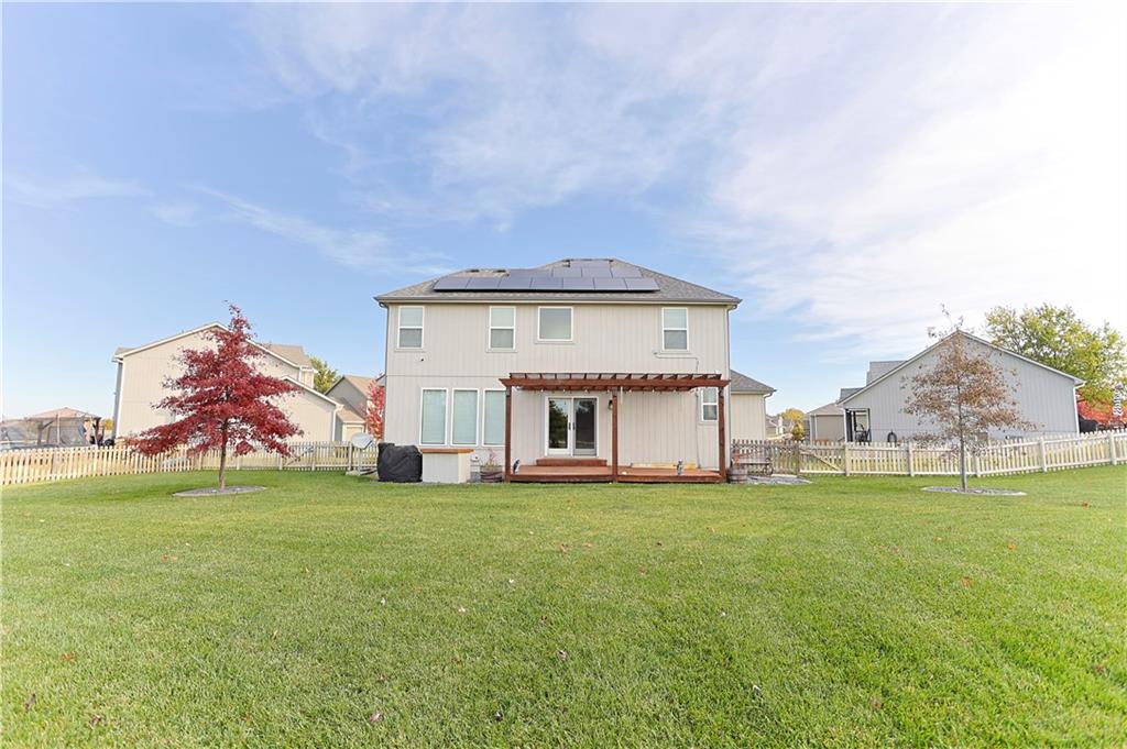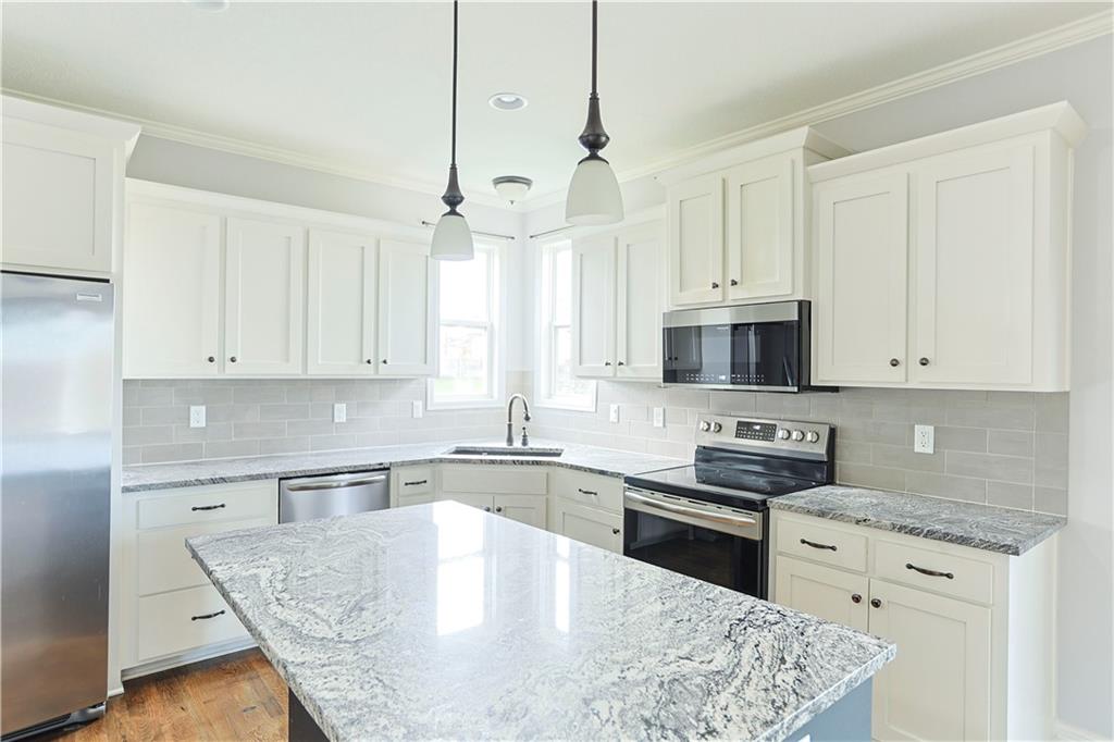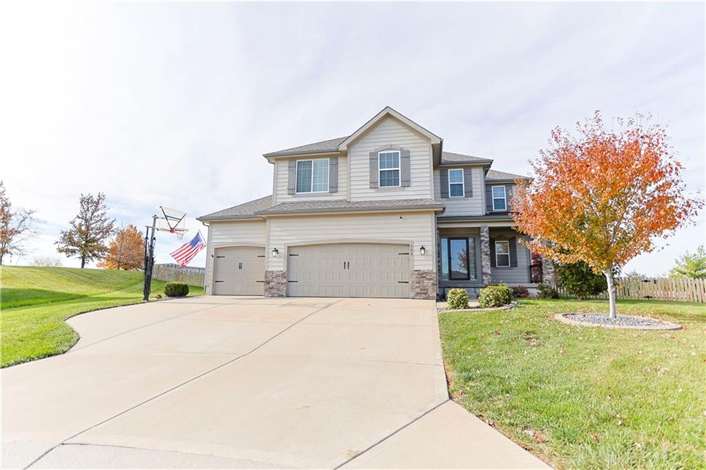 BACK ON MARKET NO FAULT OF SELLER!!! Nestled on a quiet cul-de-sac, this thoughtfully designed home offers the ideal blend of style, functionality and location. The open floorplan welcomes you with soaring ceilings, abundant natural light and a warm, modern aesthetic. The heart of the home features a beautiful kitchen seamlessly flowing into the dining and living spaces,perfect for both everyday living and entertaining. A spacious primary suite complete with dual vanities, walk-in shower and a generous walk-in closet! Downstairs you’ll find a versatile space—idealrecreation area with 3 TV hookups! Outside, the fully fenced backyard offers a serene setting for summer evenings, with ample room for BBQs, play or simply relaxing. This home was crafted with quality in mind, premium finishes and smart-home touches, and energy-efficient features and even a dedicated 240V garage EV charging outlet. With low-maintenance landscaping, a three-car garage, and a highly rated Blue Springs School District, the location truly has it all. Just minutes from shopping, dining and major road access, you’ll enjoy both convenience and tranquility. Update- Blue accent wall has been painted grey since photos. Seller has added it to the photo collection along with some of the jellyfish lighting from last season.
