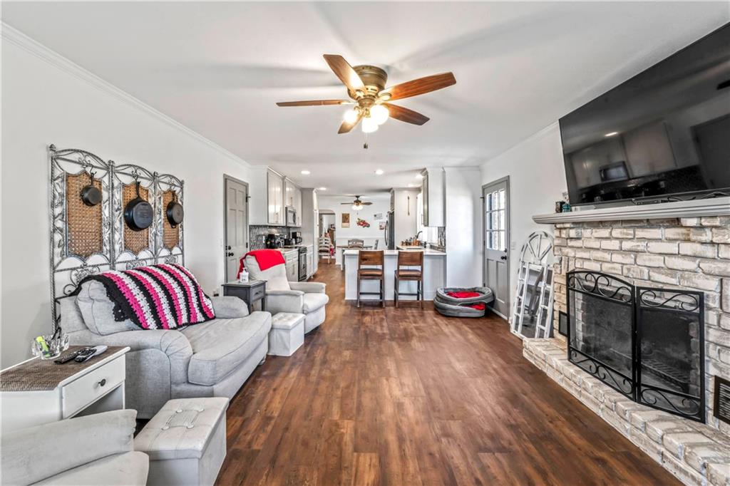 Move in ready, newly remodeled home, two living rooms! 3 Bedroom 2 bath, laundry on the main level. 1900 sq ft all vinyl flooring. 4 year old roof, Brand new gutters, gutter guards, all new windows and a 2 year old true heat pump HVAC, beautiful 4 acres lightly treed. 20 x 40 outbuilding with concrete floors and electric. Enjoy Johnson County Missouri low taxes
