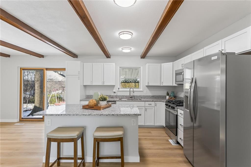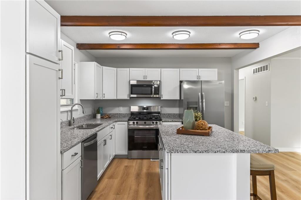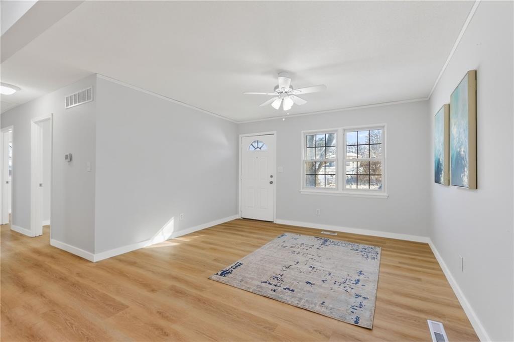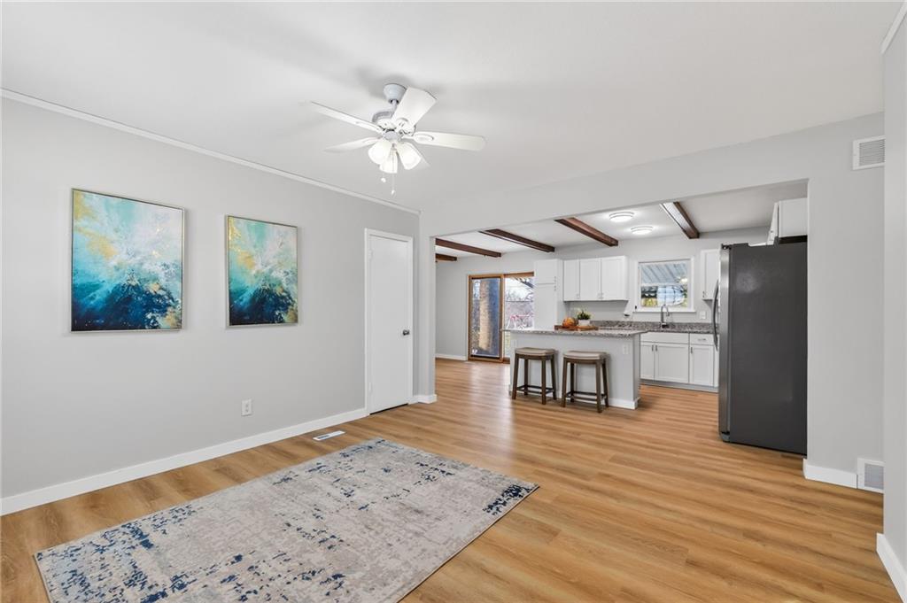 This beautifully updated 3-bed, 2-bath home blends modern finishes with a super functional layout, including two non-conforming bedrooms and a second living space in the finished basement. The main level feels bright and fresh with new vinyl plank flooring, a large dining area, and a spacious kitchen featuring an island, granite countertops, new cabinets, and all-new appliances. Downstairs offers brand-new carpet and the perfect setup for a media room, playroom, or home office. Outside, enjoy a covered patio overlooking a fully fenced yard with a storage shed—plus peace of mind knowing the roof and gutters are brand new. This one checks all the boxes for updated, move-in-ready living with space to spread out.