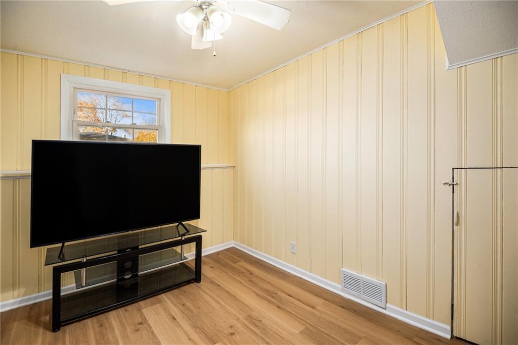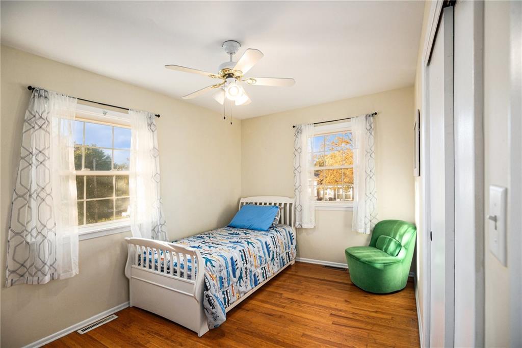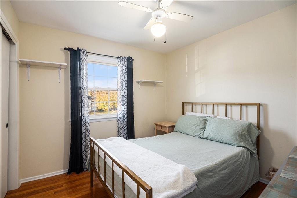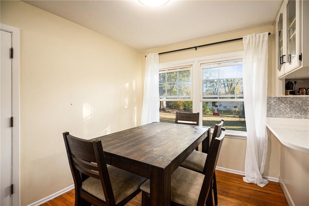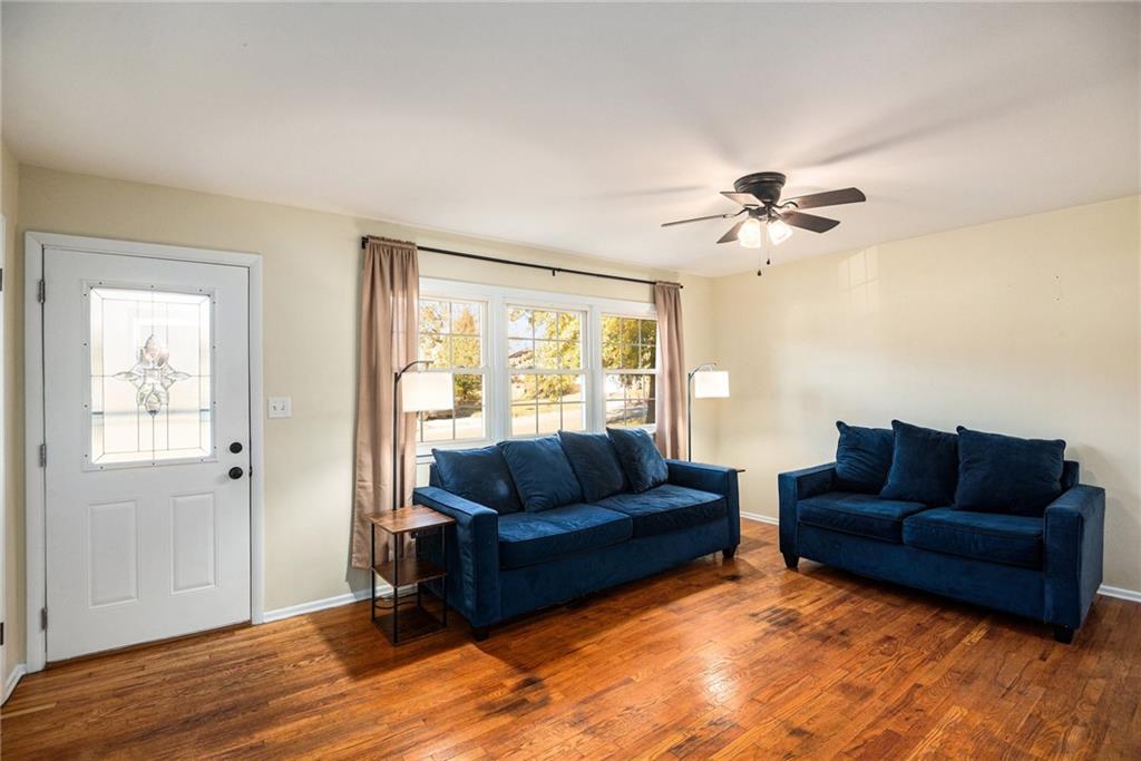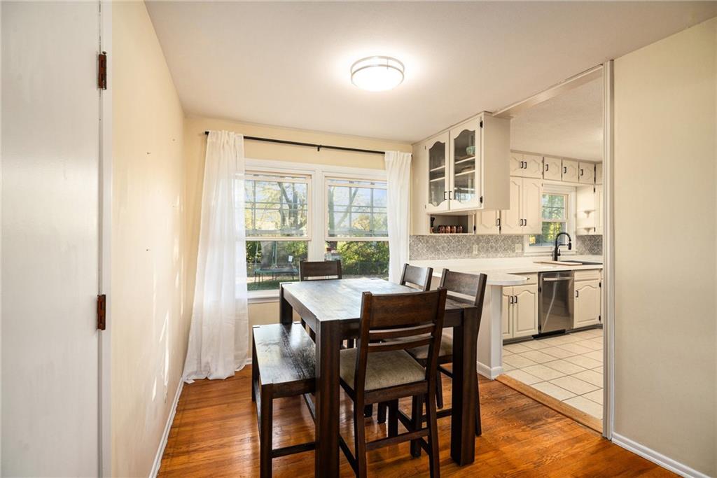 This charming home welcomes you with abundant natural light and warm wood floors the moment you step inside. The kitchen features a classic style of cabinetry with a touch of modern flair thanks to the intricate tile detail and stainless steel appliances. The main living area opens to a large deck that is perfect for entertaining or enjoying family dinners outside. Upstairs you will find three bedrooms including the primary bedroom along with a full bathroom. The lower level offers access to the garage and includes a versatile room that can be used as a kids area along with a half bathroom. There is also a shower located in the laundry room. The fenced backyard is very large and features a firepit and a shed, creating an ideal space for outdoor fun and relaxation.