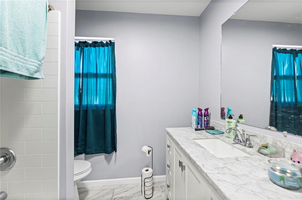 This beautifully updated 3-bedroom, 2-bath home offers comfort, character, and modern style throughout. The main level includes two spacious bedrooms and a bright, open living room filled with natural light. The fully updated kitchen features a large island, modern finishes, and an eat-in dining area perfect for wonderful meals or entertaining. Upstairs, you'll find a private suite that spans the entire floor with its own full bathroom—ideal for guests, a primary retreat, or a quiet workspace. Enjoy extra living space in the enclosed sunroom, or step outside to relax on the large covered deck or back patio. The big, flat backyard provides plenty of room to play, garden, or gather with friends. A detached garage offers convenient parking or additional storage, and the home sits on a quiet street in a welcoming neighborhood. This move-in-ready property is a wonderful place to call home!