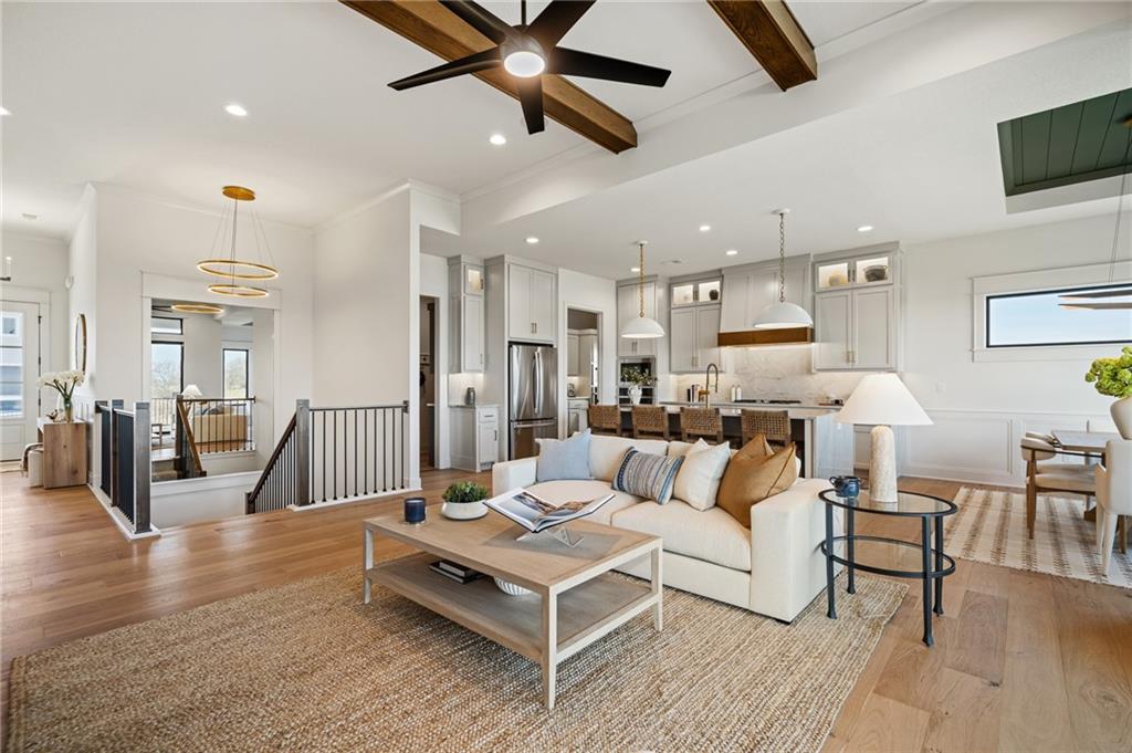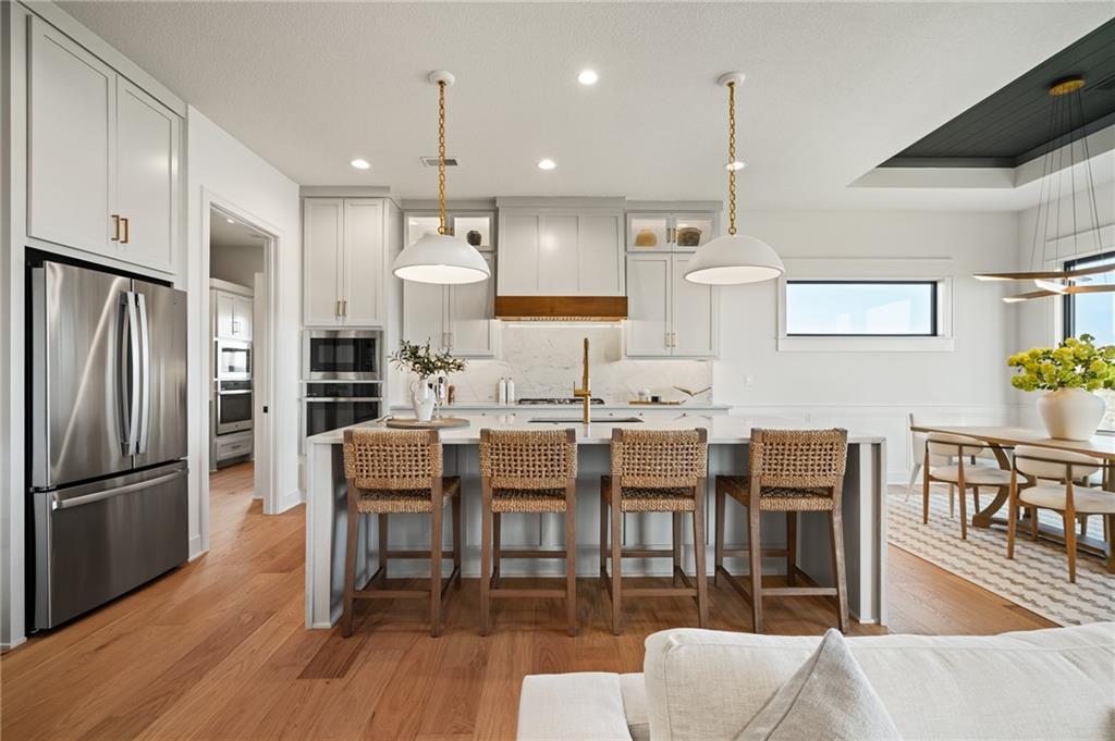 Hilmann Home Building is showcasing their exceptional Newport Rev. 1.5 sty. plan in Prairie Canyon, Johnson Counties newest maintenance provided community conveniently located just west of K-7 Hwy. off of College Blvd.! Stunning bright white, modern farmhouse front elevation w/cupola, backing east to greenspace with long valley vista's. Open concept Great rm/Kitchen & Dining w/huge island & walk-in pantry. Beautiful Primary suite and versatile Guest rm./Den on the main floor. Walkout LL features 2 generous bedrooms w/share bath, Family rm. w/FP, Rec rm space, wet bar & powder room. Covered deck off the main floor & co=vered patio off the lower level. Model home should be ready for public viewing in mid December, elegantly appointed thru-out, you won't want to miss this show-stopper by Hilmann Home Building! !