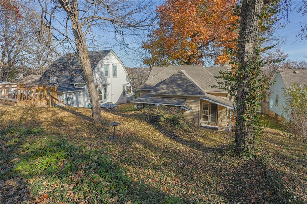 This inviting 3-bedroom, 3-bath residence features two main-floor bedrooms, including one with its own private ensuite bathroom, offering flexibility and comfort for guests or main-level living. Enjoy the ease of a main floor laundry and relax on the covered front porch complete with a classic porch swing—the perfect spot for morning coffee. A covered back deck provides additional outdoor living space, ideal for entertaining or quiet evenings at home. Upstairs, you’ll find a spacious and private primary suite, featuring a large bedroom, a walk-in closet, and a full bathroom. The home also includes a full walkout basement, offering abundant storage or workshop potential Convenient off-street parking is accessible from the alley behind the home. Located within walking distance of charming downtown Excelsior Springs, you’ll love being close to shops, restaurants, and local attractions—everything you need just a short stroll away. This historic home is full of character, comfort, and convenience—ready to welcome its next chapter.