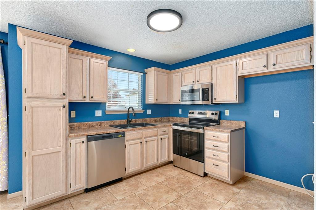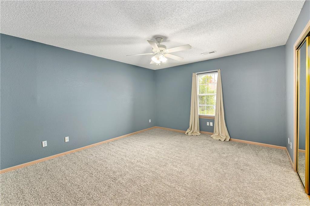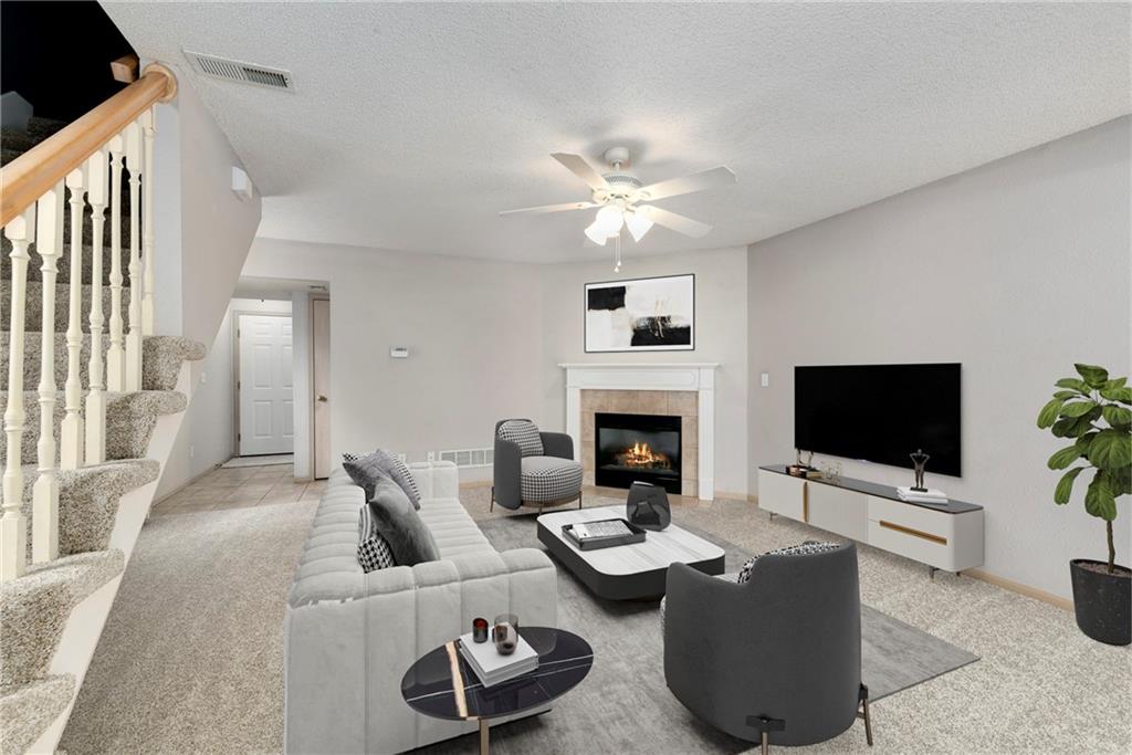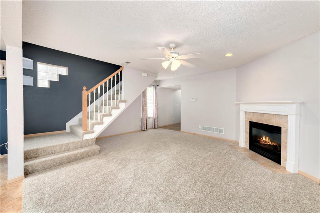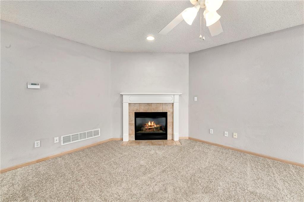 Highly sought after end unit that backs to greenspace with trees. MOVE IN READY!!! Cleaned from top to bottom (even power washed the patio) with a splash of color (various ocean/sky blues and relaxing grays). NEW - kitchen SS appliances (stove, microwave, & dishwasher), carpet throughout the whole unit, kitchen faucet, primary suite - light fixtures, sink faucet, shower & bathtub faucets, toilet flange ring & wax ring), water heater (next week), window & storm door screens (4), & 2 sets of blinds. Seller replaced A/C unit the summer of 2023 to a Trane XR (upgraded). Other updates include - kitchen ceiling light fixture, taller toilet in primary bath, & new fan in living room. BIG BONUS - Garage features an attic pull-down with stairs for additional storage. Front faces West (sun to clear driveway). The patio is on the East (shade for the evening). Washer & dryer stay with the unit. Amenities include lawn care, snow removal, community pool, exterior maintenance. Neighborhood is owner occupied only, no rentals allowed. Home is close to shopping and restaurants, with quick highway access, and located within award winning Lee's Summit School District (New middle school - 1 mile to the East). Don’t miss out on this fantastic opportunity to own a move-in ready home with thoughtful updates in a prime location. COME SEE IT TODAY!