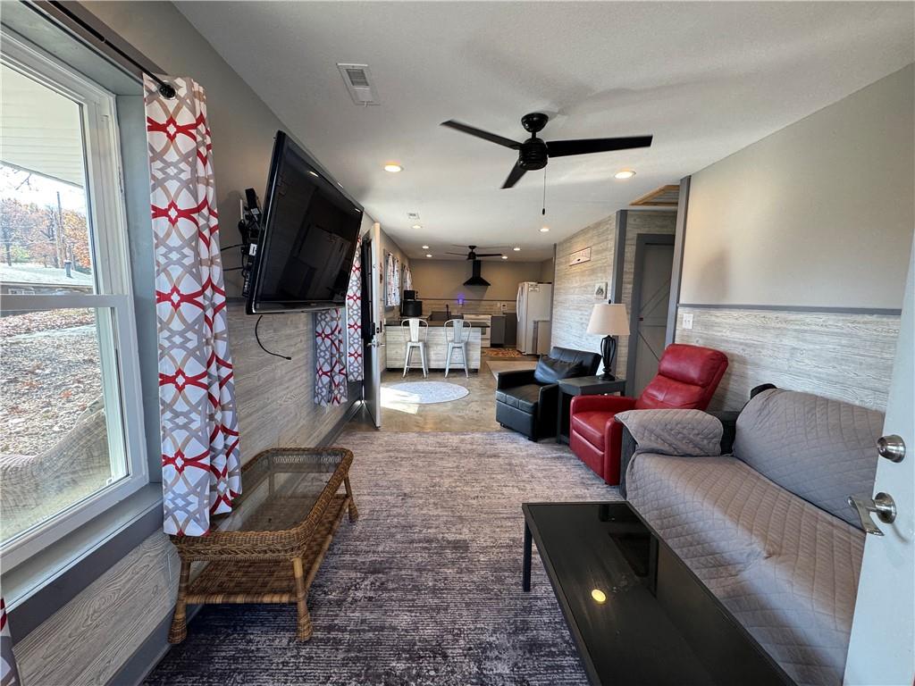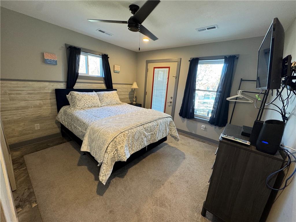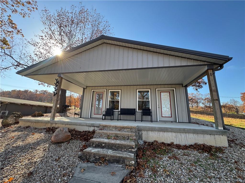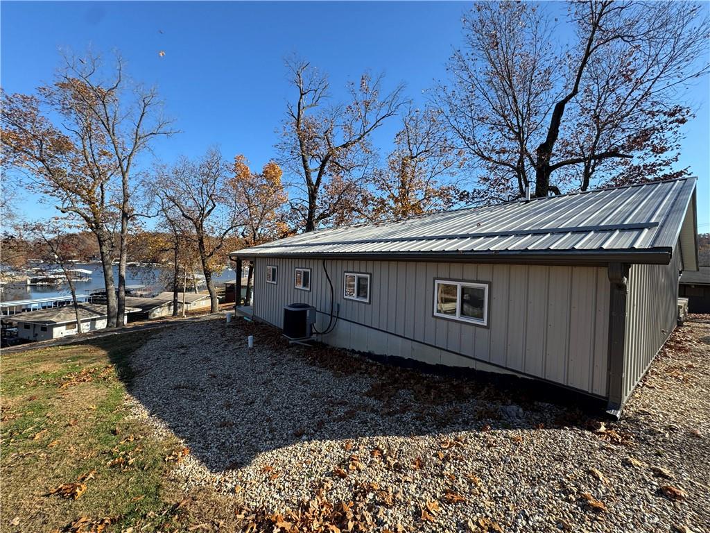 This adorable lake view cabin sits in the heart of Bass Point Resort on Lake of the Ozarks, offering just under 1000 square feet and two full bedrooms that easily accommodate queen beds. Most furnishings stay, making this the perfect low-effort personal getaway or ready-to-launch short term rental. The home features durable metal siding and a metal roof for easy maintenance, south and east facing porches for morning and afternoon sunrise & sunset lounging along with two jet ski ramps with direct lake access. Inside the full kitchen provides plenty of room for cooking as well as entertaining. You’ll find a large full bathroom with double sinks and a walk-in shower with a rain head shower head, plus bonus washer and dryer hookups located in the kitchen. (Washers & dryers available in the club house just across the street) Short term rentals are allowed nightly, weekly or monthly from April 1st through October 31st, making this a strong seasonal investment property. Bass Point Resort amenities are a major highlight and include three pools with an indoor and outdoor pools a kiddie pool, a covered fishing dock, a swim dock, boat slips up to thirty feet with electric, kayak and paddleboard rentals, a full tennis court striped for four pickleball courts, disc golf, horseshoes, playground, community fire pits and a large event space known as the Commodore Room with a full kitchen and bar. Boat docs can be rented for $18/night or purchased. The entire resort has free WiFi, and cable is available in every cabin. This practically new cabin gives you stunning lake views, solid rental potential and full access to one of the most amenity packed resorts on the lake. Perfect for anyone wanting a turnkey personal escape or an income producing seasonal rental. Don't miss your chance to live your best LAKE LIFE!!