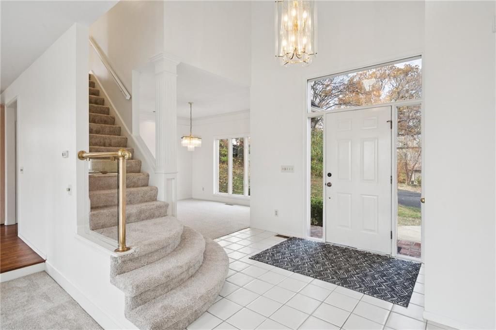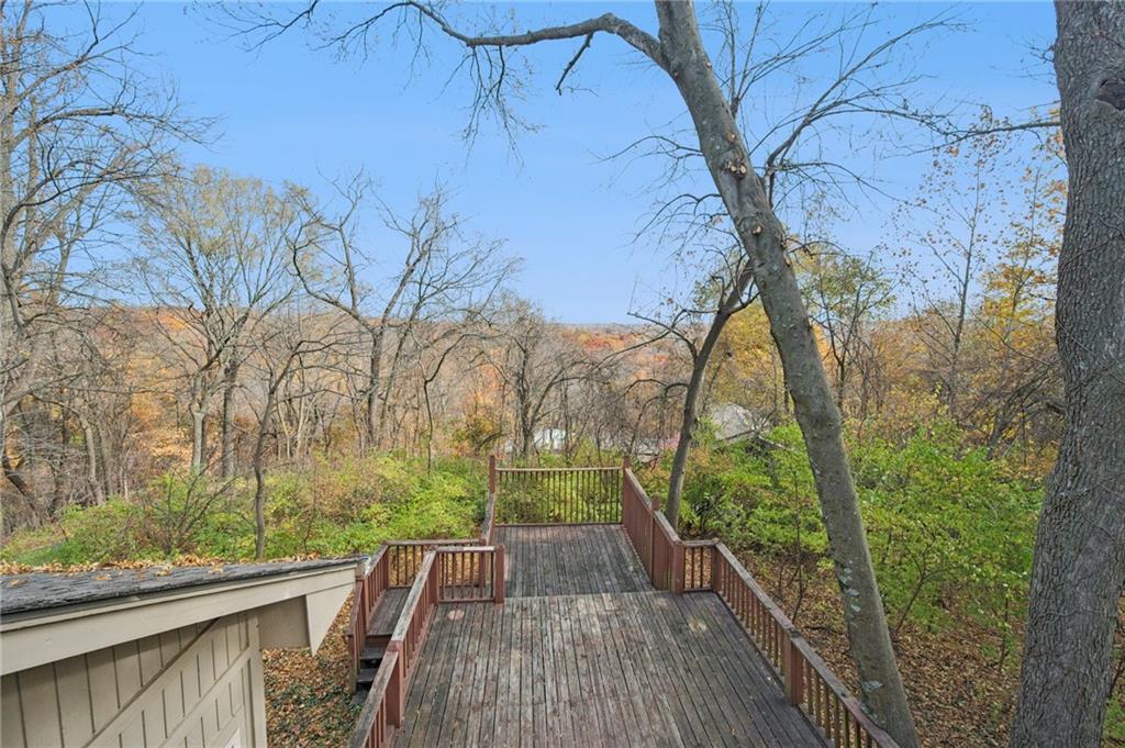 Custom-built home by current owners new to the market! Another beautiful, architectural designed Bluffs home nestled into a hill-top treehouse canopy! Gorgeous views from an abundance of tall windows throughout the home make for a stunning backdrop. Vaulted ceilings, skylights and a catwalk view from the second floor add light and airiness to the home's floorplan. First floor is anchored by a see through fireplace between great room and cozy hearth room. Multiple dining options exist from a formal dining room to more informal breakfast room and casual kitchen island seating. Hardwood floors are found throughout the kitchen, hearth and breakfast room. Ample cabinet and counter space, plus pantry storage make for an efficient kitchen layout. Just off of the kitchen is access to a large back deck for private outdoor gatherings and relaxation surrounded by trees. Also, on the main level is the LARGE primary bedroom and primary bath complete with a see-through fireplace, jacuzzi tub, separate shower, spacious double vanity, martini deck and two his and hers walk-in closets! The second floor features glass & brass railings to maximize the views to the great room and entry below. On this level, you will find bedroom 2, full bath with double sinks and vanities, and bedroom 3 which features a small deck to enjoy nature with your morning coffee or evening wine. Both bedrooms have walk-in closets--in fact, the closet space in this home is fabulous! Two additional walk-in closets are found on this level, perfect for crafts, seasonal clothes storage or holiday decorations! Need more space down the road? The unfinished basement is ample size with an egress window, tall ceilings and plumbing for a bath. The Bluffs is unique in so many ways with it's signature trees, the convenience to downtown Parkville, shops, great restaurants, English Landing Park, downtown KC and MCI airport. All within one of the state's premier school districts! Come home for the holidays!!