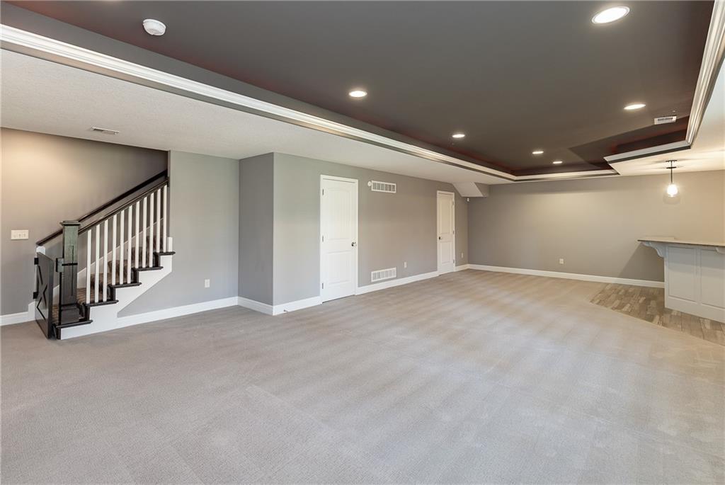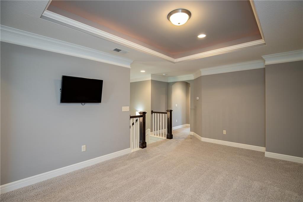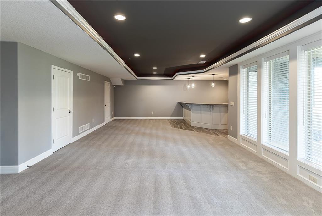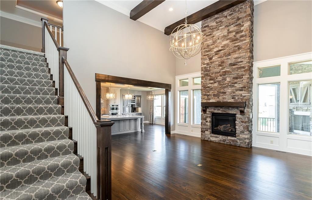 Step into this pristine 1.5-Story WatersEdge WALK-OUT where elegance, comfort & lifestyle converge. Situated on a premium .43-acre greenspace lot, this home offers 6 bedrooms, 5.5 bathrooms AND a private office w nearly 5,000 sq ft of thoughtfully-designed living space, featuring wide-plank, hickory wood floors & a stunning 2-story great room w stacked-stone fireplace & tons of natural light. Gourmet kitchen includes floor-to-ceiling shaker-style cabinets, granite & quartz countertops, gas cooktop, double wall ovens, oversized walk-in pantry and amazing built-in butler's hutch. An instant hot water makes meal prep effortless. Dining area flows seamlessly to a screened-in Trex outdoor deck for casual dining w built-in fireplace for year-round enjoyment. The primary suite is a private retreat with spa-inspired bath, soaking tub, multi-head walk-in shower, and a massive custom walk-in closet with pass-through laundry access. Upstairs, a spacious loft serves as a flexible family room or play area, complemented by 3 additional bedrooms each w private bathrooms & walk-in closets. The walk-out lower level is ideal for entertaining, featuring a family/media room, 5th & 6th bedrooms w jack-n-jill full bath. Basement opens to a covered concrete patio leading out to a gigantic yard. Enormous storage room. NEW: AC/HVAC, sump pump, smoke detectors, fence, exterior paint, external front light fixtures. Regular pest control and professional cleaning services. Additional features include OVERSIDED GARAGE, ADT Security System, front/back sprinkler. Plenty of space for home gym/craft room/recording studio/meditation/wine cellar etc! CLUBHOUSE: full kitchen, fitness room, party space. Move-in ready w all kitchen & laundry appliances included...this home delivers luxury, space, lifestyle in one remarkable package...your next VIBE awaits! MLS photos are virtually-staged.