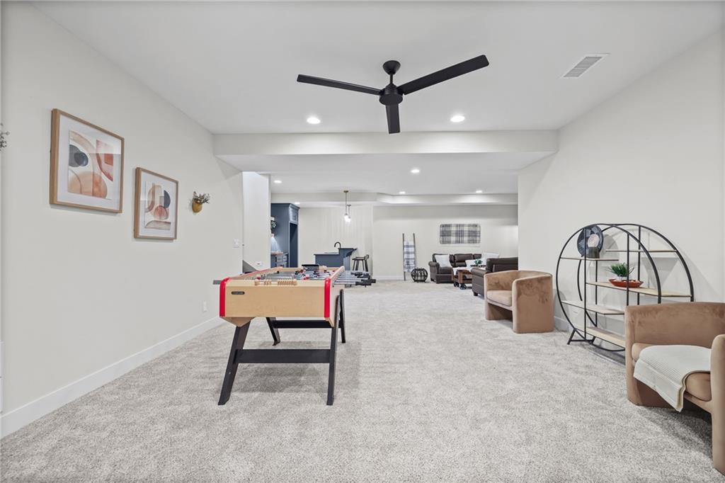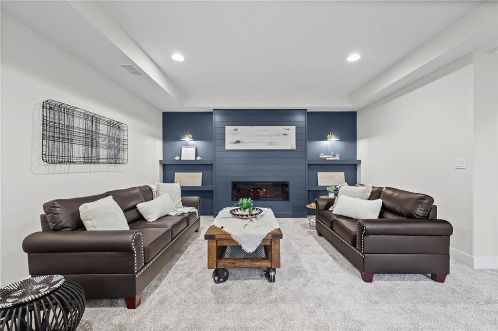 Move-in ready, beautifully designed & built for long-term livability! This exceptional home offers high-end craftsmanship, thoughtful accessibility features & beautiful designer finishes throughout. Located in the highly rated Lee’s Summit School District, it's just a short walk to the neighborhood elementary & only minutes from LSW High School! A rare find in today’s market, this home offers true ZERO ENTRY access, providing step-free transitions inside for enhanced ADA accessibility, long-term comfort & effortless first floor living. An ENERGY STAR 3.1 rating delivers superior insulation, energy efficient windows & HVAC system=improved indoor comfort & lower utility bills! Outside: beautiful board & batten siding w/stone accents, cedar trusses & covered front entry. Inside: classic-modern design makes a striking first impression w/soaring ceilings, rich engineered wood floors & an open, airy layout. The foyer features a stunning wood-accent barrel ceiling & custom wall trim that sets an elevated tone. An impressive floor-to-ceiling stone fireplace graces the family room & a wall of windows drench the main level in natural light, contributing to the seamless flow into the kitchen & dining area. The designer kitchen is a true showstopper, featuring an oversized quartz island & premium custom cabinets that perfectly complement the wood accent range hood. A gas cooktop & stainless appliances=chef's delight, w/a walk-in pantry providing super storage space for grocery staples. The primary suite is a true retreat, featuring a spacious bedroom w/tray ceiling & large windows plus a spa-like bath w/dual vanities & an oversized walk-in tile shower. A large secondary bedroom, full bathroom, a pocket office & spacious laundry room round out the main floor. Downstairs, you'll find a large WOW FACTOR Rec Room w/floor to ceiling fireplace, a gaming area, wet bar, 2 additional spacious bedrooms serviced by a 3rd full bathroom & a 1/2 bath (with urinal!) - perfect for poker night!
