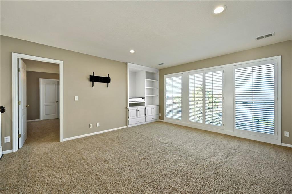 Looking lovely in Leawood is this 1.5 story home with a phenominal floor plan that is laid out with large rooms and spaces. Many big windows let in lots of light and have plantation shutters on the main level! The kitchen has double ovens, warming drawer, Viking gas range with downdraft, walk in pantry and is open to the hearth room with a see through fireplace. The main level office features a wall of custom cabinetry and new carpet. The primary on the main level has an updated tile shower and freshly painted cabinets. Upstairs the bedrooms are generously sized and paired with a large loft room for extra space! The lower level is open with a kitchenette, full size refrigerator and bar seating. A 5th non-conforming bedroom, full bathroom and big workout room bring every bit of functionality to this home. All located on a lot with a fully fenced backyard, newer driveway and sidewalk, just down the street from the neighborhood pool, in Iron Horse Estates surrounding the public golf course and driving range. The location offers so many nearby amenities, and award winning schools!