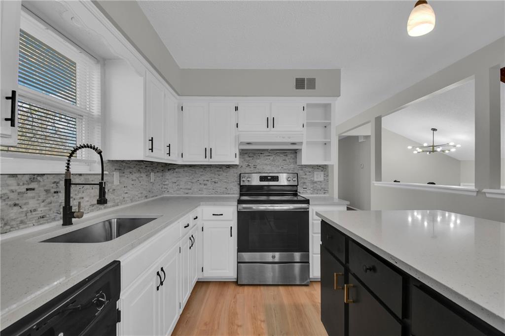 Beautifully remodeled three level home with vaulted ceilings, kitchen and dining room views, fireplace, walk out lower-level rec room, room for fourth bedroom below, deck with unobstructed views, rural feel, city close in desirable Indian Creek Subdivision in the heart of Lee’s Summit. Step inside to soaring vaulted ceilings that open up the main living space, highlighted by a stunning fireplace and accent wall that brings warmth and character. The kitchen and dining room overlook the main level, offering great sightlines and natural light. The updated kitchen features white painted cabinets, quartz countertops, a spacious island, and all-new fixtures that tie the modern look together. The home shines with fresh interior and exterior paint and many brand-new windows, bringing in great natural light while boosting energy efficiency and curb appeal. With two finished lower levels, you have flexible space for a home office, gym, or a fourth non-conforming bedroom. The lower-level rec room opens directly to the huge, fenced backyard—complete with gorgeous mature maple trees and even a pear tree that produces fruit. A great city-maintained green space with paved walking path and city park are right out the backyard! Additional upgrades include new plush carpet with premium pad, luxury vinyl plank tile in the kitchen and bathrooms, and fresh finishes throughout. Enjoy outdoor living on the oversized deck with unobstructed views or step straight out from your yard to enjoy the city park and walking trail. This one has the updates you want, the space you need, and a location you will love. Make it yours today.