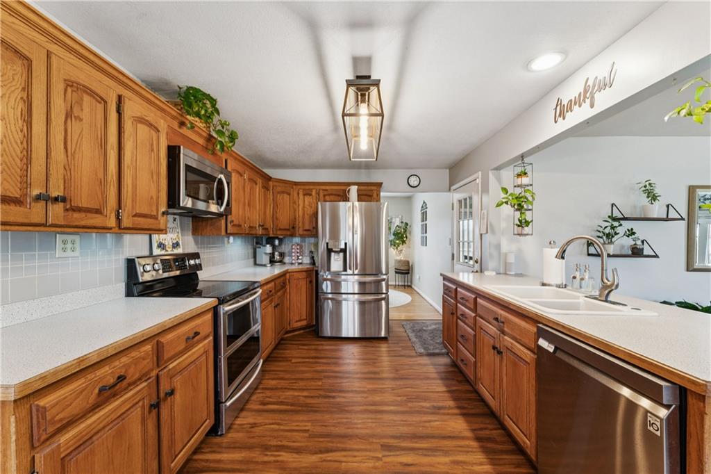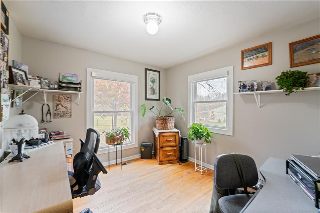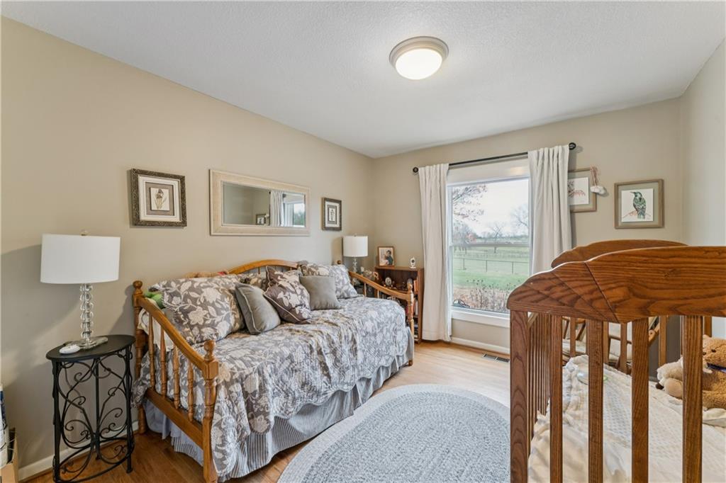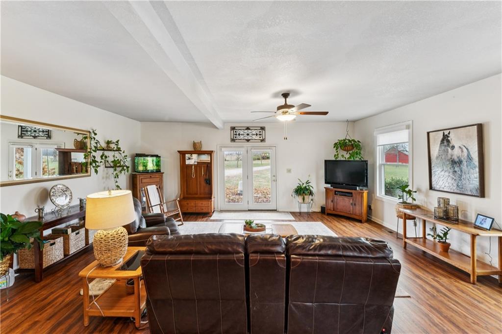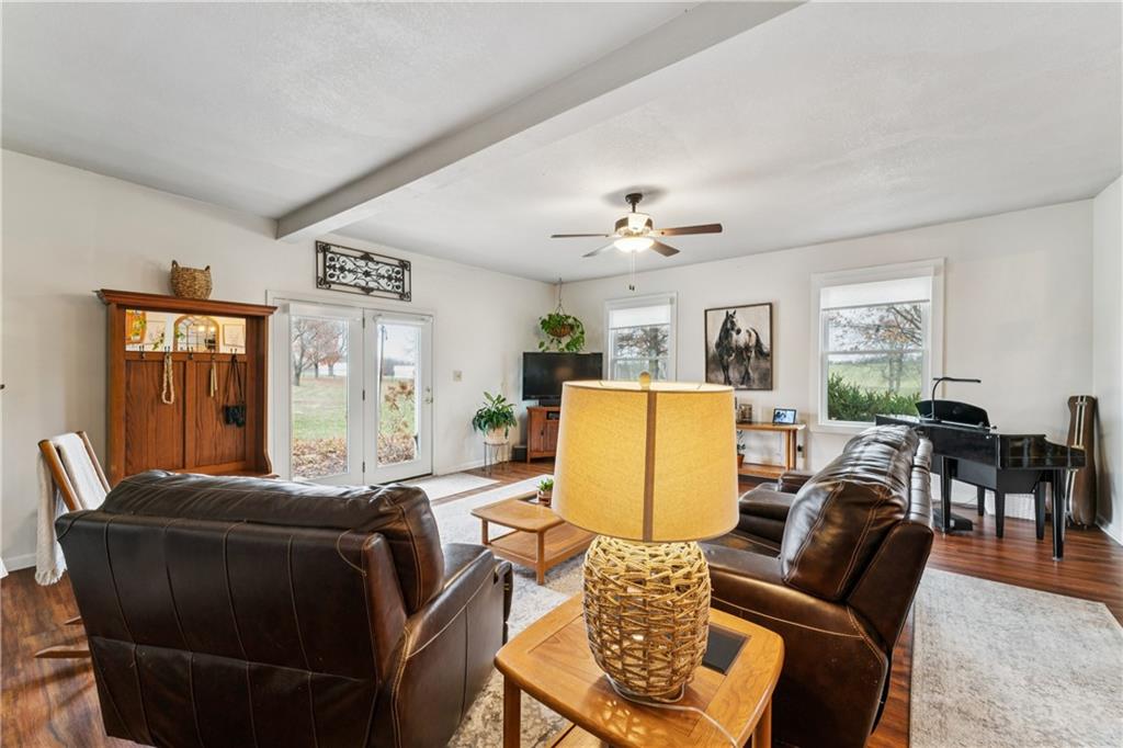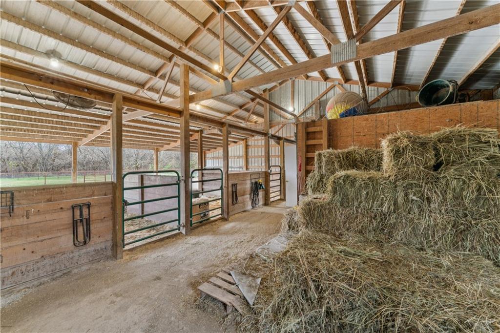 Just minutes from Overland Park and Louisburg, this 20-acre retreat offers unmatched privacy, incredible views, and a perfect blend of woods, pasture, and water. With ten acres of mature timber, ten acres of open pasture, a stocked, manicured pond, and Poney Creek running the full length of the property, it is the ideal blend of beauty and function. Horse ready and fully set up, the property includes horse safe fencing, cross fencing, a heated automatic waterer, three stalls with an attached run-in shed, a tack and storage room, plus water and electric in the barn. The home offers more than 3,100 square feet of comfortable, thoughtfully designed living space. Large windows and a brand-new deck capture sweeping views and daily wildlife. Inside, the great room is perfect for gatherings, and the kitchen is built for entertaining. Key updates give serious peace of mind. The home features 20 new thermal windows, a new sliding door, new gutters with guards, new composite siding with a 50-year transferable warranty, a one-year-old HVAC system, a one-year-old water heater, and a 5-year-old, 30-year roof. Follow the long private driveway to a property that feels secluded, peaceful, and truly special. This is a rare opportunity to live the outdoor lifestyle you want while staying close to the conveniences you need.