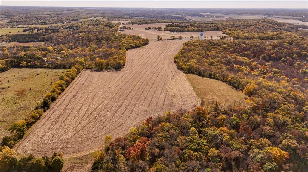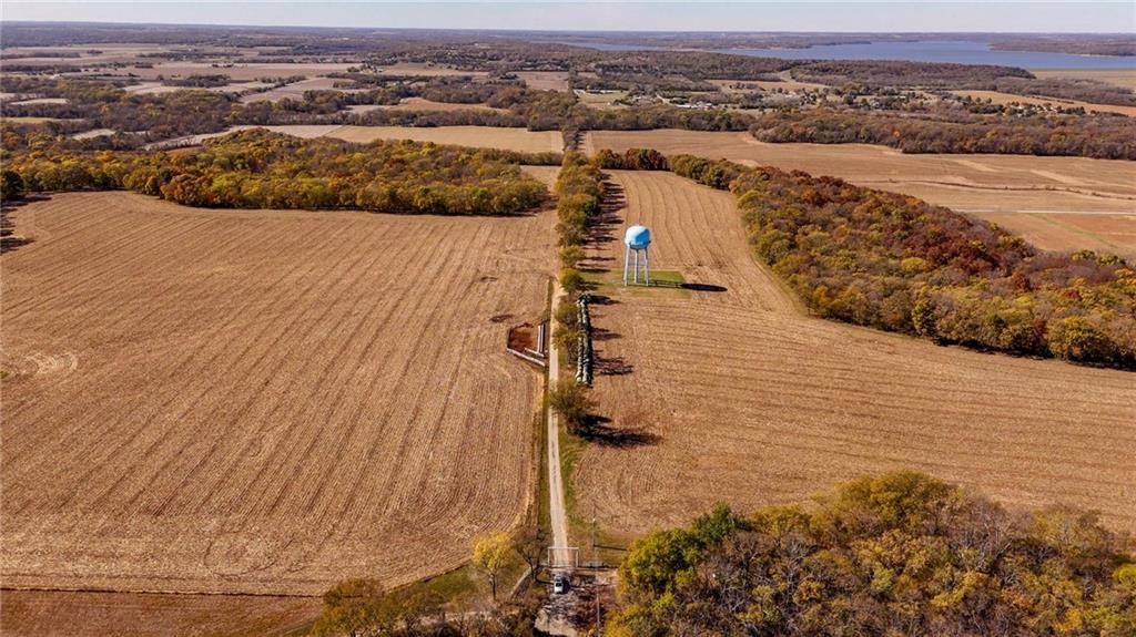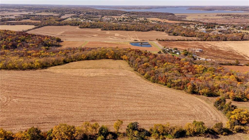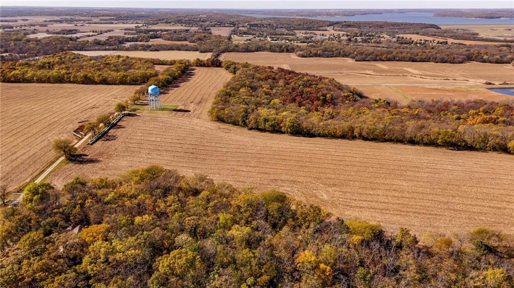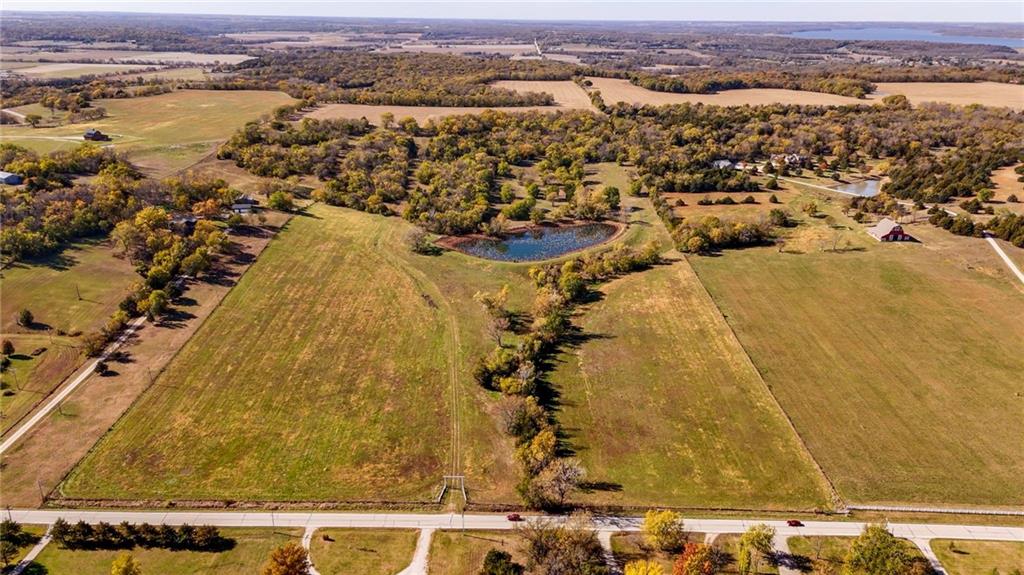 This 395.5-acre property offers rare contiguous acreage on all paved roads in Wakarusa Township, just a mile and a half from the K-10 bypass and only minutes from Lawrence, making it an excellent location for new home development. The property is made up of four individually surveyed tracts: 95.5 acres m/l on N 1100 Road, 76.2 acres m/l on N 1100 Road, 81.5 acres m/l on E 1200 Road, and 142.3 acres m/l on E 1200 Road. It sits in a prime area for outdoor recreation, with abundant wildlife (especially deer and turkey) and strong potential for future hunting leases. Five spring-fed ponds, mature hardwood timber, and a high bluff with sweeping views to the north and west overlooking Clinton Lake make this a standout setting for anyone who values both privacy and natural beauty. The land also offers approximately 160 acres of tillable ground, approximately 40 acres of pasture, and 200 acres of timber, along with fencing, cross-fencing, and two RWD #5 water meters to support a variety of agricultural uses. With its mix of productive ground, rich habitat, and exceptional access, this property blends recreation, versatility, and convenience in one close-to-town location