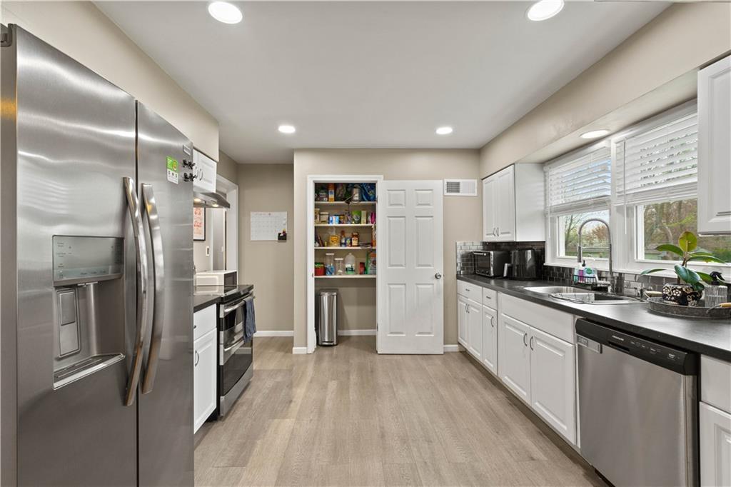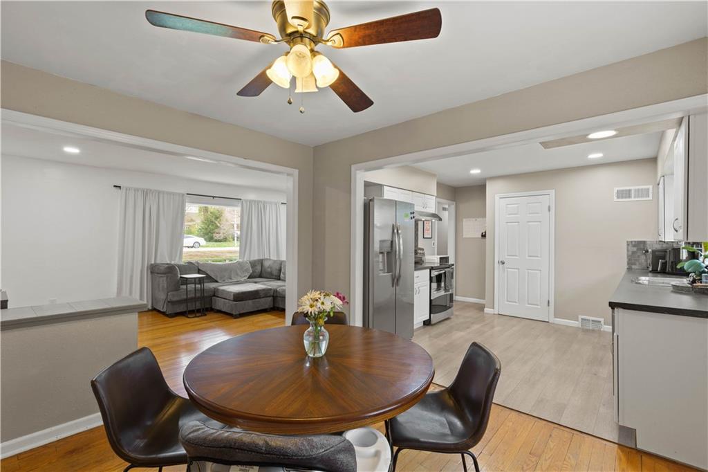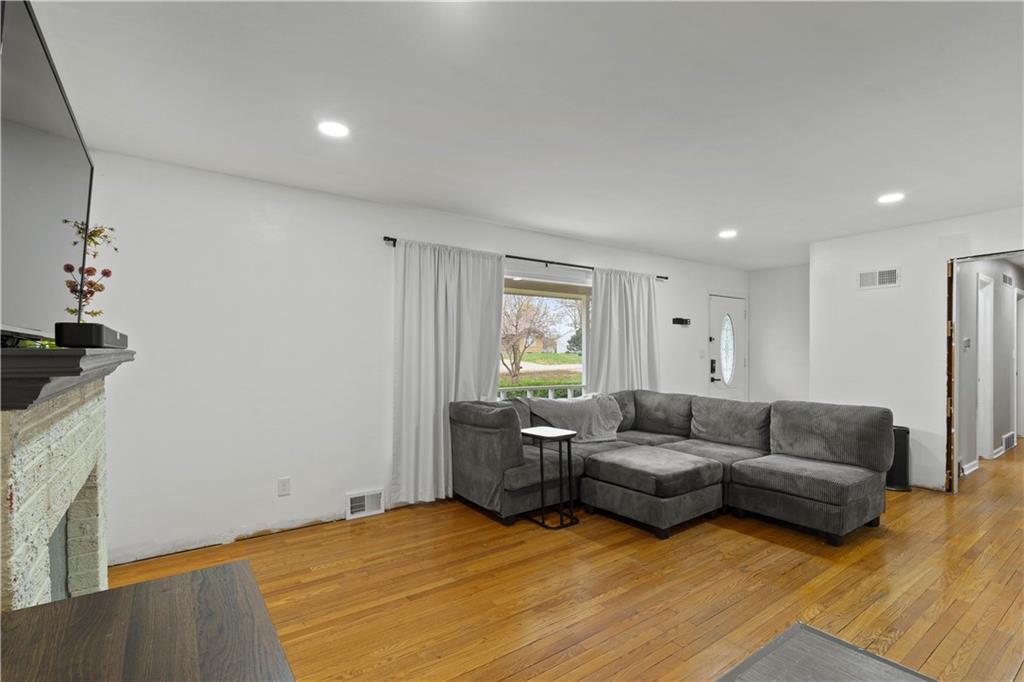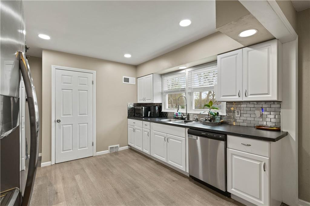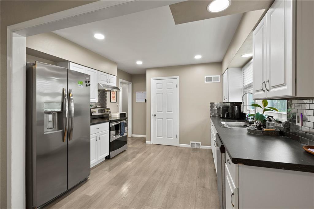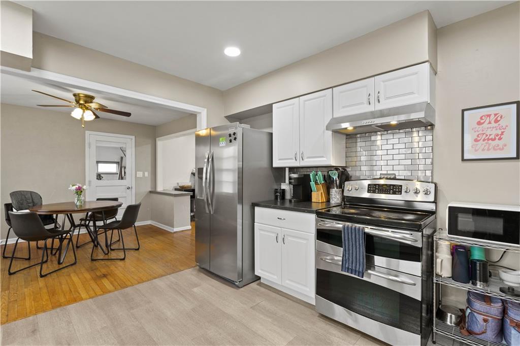 3-bedroom, 1-bathroom ranch-style home featuring an updated kitchen with modern appliances and ample cabinet space. The property includes a spacious living area and a large backyard with a new HVAC system and hot water heater (both around 1yr old), and freshly laid sod in the front yard.
