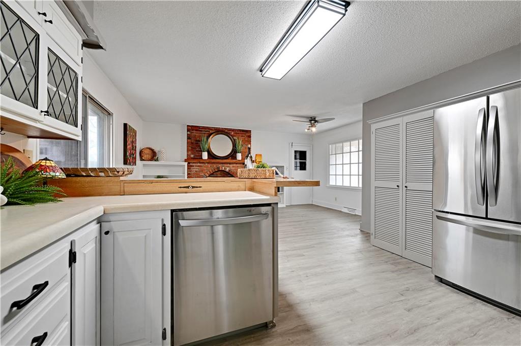 CHARMING & UPDATED 1.5 STORY! Back on the market NO FAULT OF SELLER! Fantastic, PRIVATE LOT sets the tone the moment you arrive. Step inside to find new hardwood flooring throughout the main level paired with fresh interior paint that makes everything feel bright and current. The spacious great room overlooks the treed backyard and brings in tons of natural light. The kitchen delivers character with enameled cabinets, stainless steel appliances, room for a table, and a cozy brick fireplace with bookcases. A door off the kitchen leads straight to the patio—perfect for quiet evenings outdoors or relaxing under the backyard gazebo. The convenient first floor primary bedroom offers plenty of closet space and a deck off the bedroom to enjoy your morning coffee. The second bedroom could also serve has a convenient office. Check out the updated full bath with a large walk-in shower, charming ship lap, new vanity and cool tile flooring. Head upstairs to find two additional bedrooms with hardwood floors connected by a Jack-and-Jill bath. Major updates are already handled: new HVAC with warranty, low-maintenance siding, gutters with gutter guards, and an invisible fence. The huge basement offers excellent storage or an easy opportunity to finish additional living space. All of this in a prime location close to schools, shopping, and highway access.