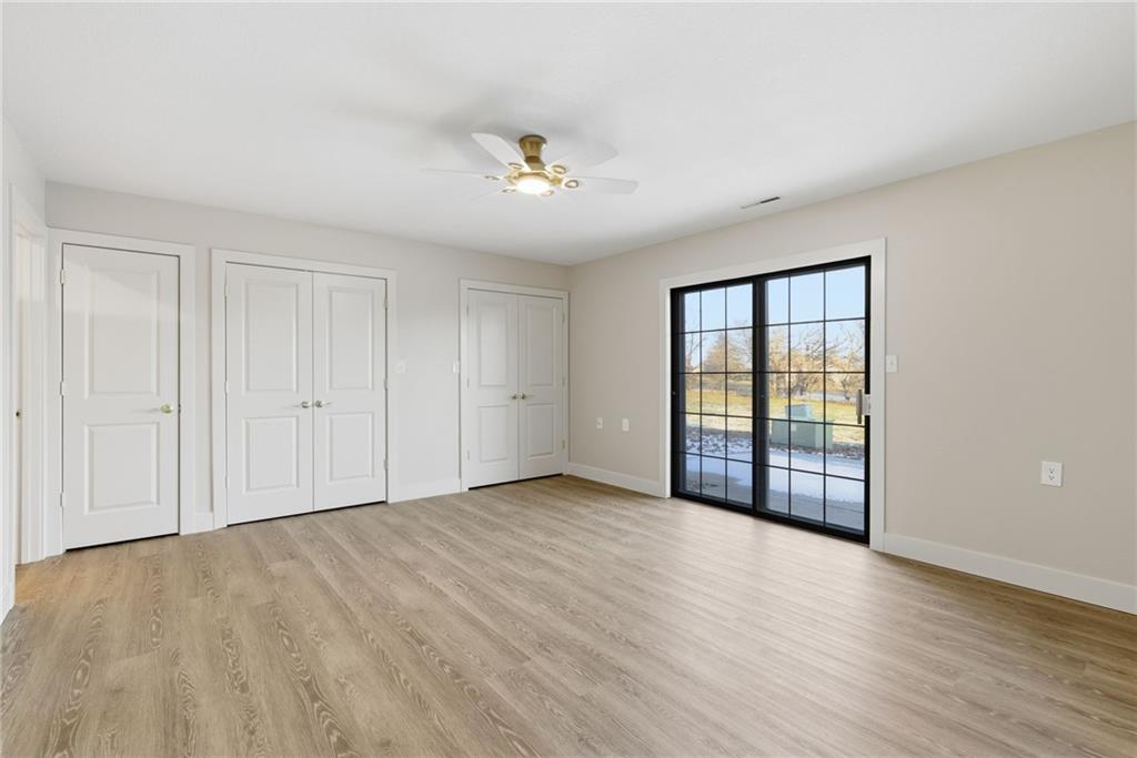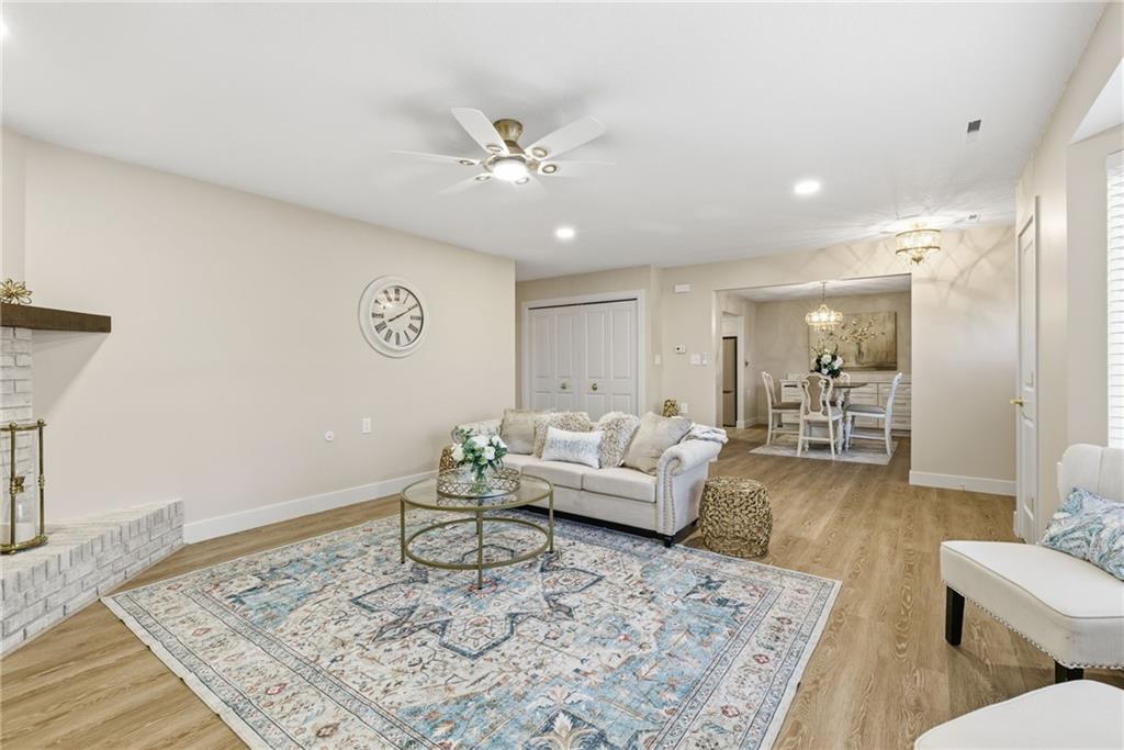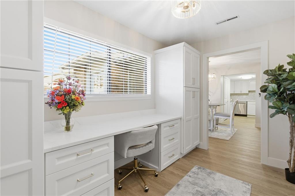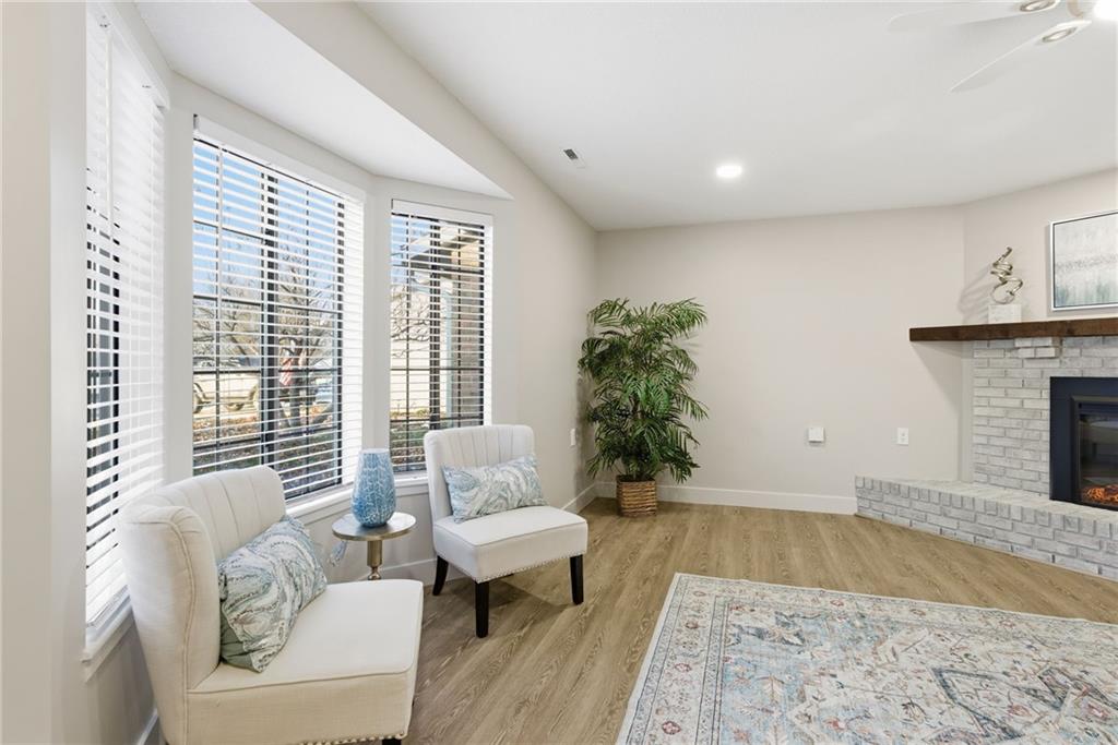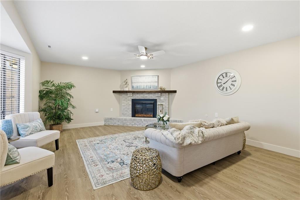 Welcome to stress-free living in the 55+ Foxwood Springs community in Raymore, MO. This beautifully remodeled home features all-new LVP flooring, baseboard trim, lighting, textured ceilings, fresh paint, updated faucets, quartz countertops, window treatments, custom cabinets, and custom closet shelving. The spacious dining room includes a built-in buffet and cabinets, and a new home office with built-in desk overlooks a large window. The kitchen offers new stainless appliances, updated cabinets, new walk-in pantry, quartz counters, and backsplash. The living room includes a new electric fireplace with remote for year-round comfort. Popcorn ceilings removed, new doors, new landscaping, and more. Enjoy maintenance-provided living with HOA services that include 24-hour security, emergency response, lawn care, snow removal, trash, exterior and interior maintenance, and utilities (water/sewer). A one-time $3,000 access fee provides use of community amenities including indoor pool, fitness center, library, lounges, meeting rooms, billiards, shuffleboard, garden plots, greenhouse, picnic area, and on-site dining, with optional housekeeping and transportation services. Experience the perfect blend of independence and community—truly a wonderful place to call home.