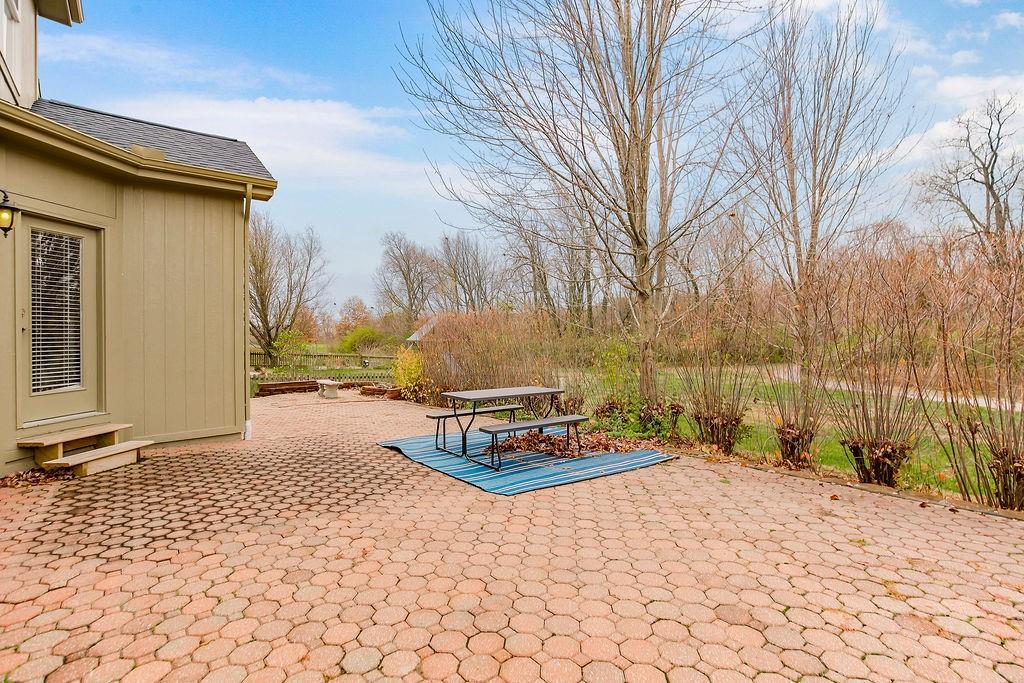 Discover luxury living in the sought-after Eagle Creek community. This beautifully updated 4-bedroom, 3.5-bath home backs to mature trees and walking trails, offering privacy and a peaceful setting. A full roof replacement was completed in May 2025, and the kitchen includes a new built-in microwave. The main level features an open-concept layout with a spacious family room, hardwood floors, abundant natural light, upgraded window shades, and a fireplace with built-ins. A formal dining room welcomes you at the entry. The chef’s kitchen offers an oversized island with breakfast bar, extensive cabinetry, three ovens, two dishwashers, a gas range, and a large butler’s pantry. A main-level powder room adds convenience. A private elevator provides effortless access to all floors, and smart home features enhance daily comfort. Upstairs, the primary suite includes a sitting area, spa-like bath with whirlpool tub, dual sinks, walk-in shower, and an expansive closet. Secondary bedrooms offer generous storage, with one featuring a private en-suite bath and the other two connected by a Jack and Jill bath. The full unfinished basement offers excellent storage and includes a reinforced safe room. Outdoors, the impressive 22’x55’ paver patio with a half-circle firepit creates an ideal space to enjoy every season. The backyard backs to trees with quick access to the trail system. Eagle Creek residents enjoy two pools, a recreation area, playground, wooded natural areas, and extensive trails. A new pickleball court and additional playground are being built within walking distance of the home, adding even more value to this exceptional location.