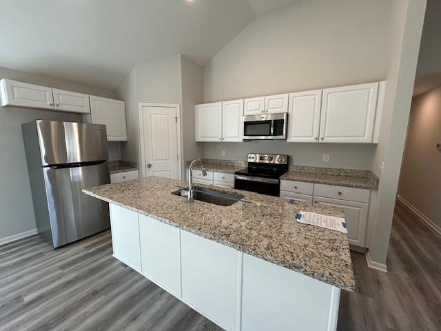Built in 2021, this Split Entry home has a bright, open-concept main level featuring soaring vaulted ceilings throughout the Living Room, dining area, and Kitchen. Durable luxury vinyl plank flooring flows seamlessly through the entire home. The Kitchen offers a huge island with seating, granite countertops, stainless steel appliances, and a roomy pantry. Entertaining is effortless with the kitchen opening directly to the living and dining spaces, plus sliding doors that lead to the deck overlooking the expansive backyard — perfect for summer barbecues and relaxing evenings. Convenient main-level laundry, a large primary suite with an ensuite boasting double vanity, tiled shower, and private water closet. Two additional bedrooms and a full bath complete the upper level. Head downstairs to the cozy finished family room with half bath — ideal for movie nights, a playroom, or home office.Buyer & Buyer's Agent to verify all information including square footage, zoning, taxes & room sizes during the Inspection Period.