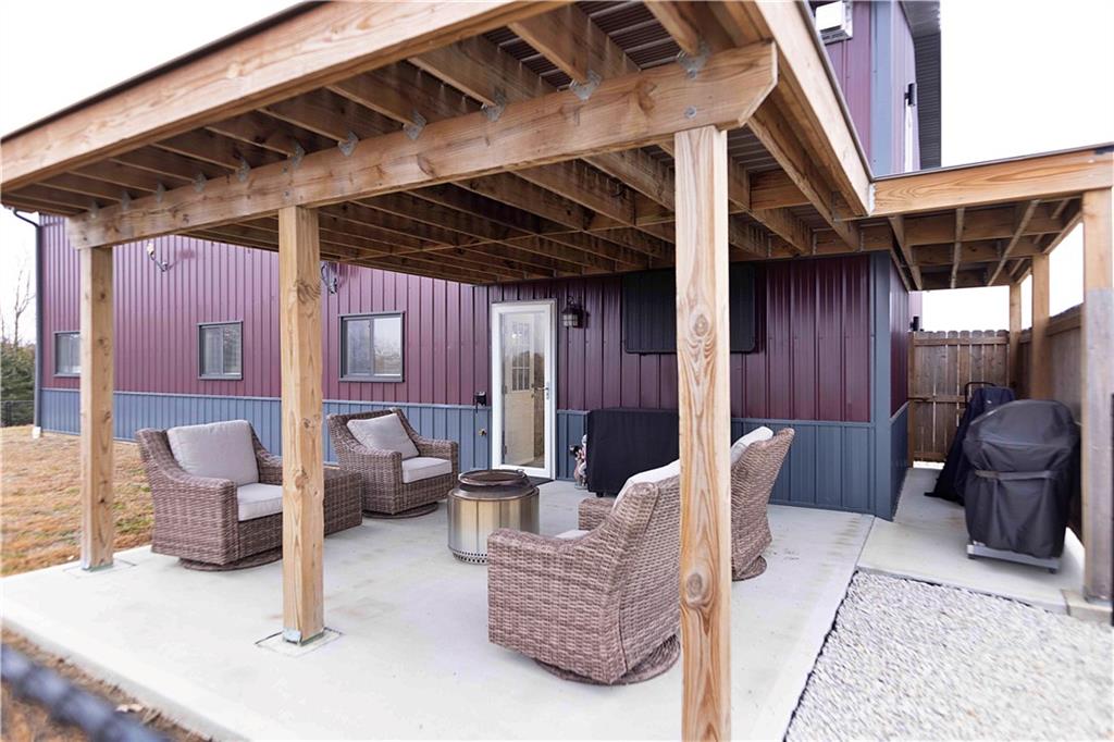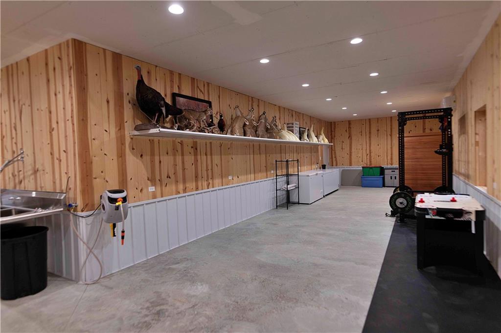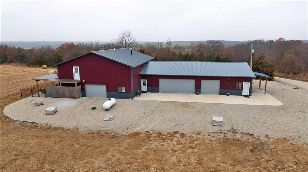 Presenting an expansive Home & Shop Combo Building on 40+- Acres near Ridgeway, MO. The building is as impressive as it is expansive. It boasts 6 bedrooms, 3 bathrooms, 3 different garage type areas, 2 kitchens, 2 family rooms, an office, a dining room and a taxidermy shop. This is truly one that you will have to see to believe! 10' ceilings give the first floor living space an open feeling where the dining room, living room and kitchen all flow together. The living room features a propane fireplace and adjoining office. There are a total of 4 bedrooms on the first floor, with the primary bedroom also including a private, full bathroom. The guest bathroom is spacious, and includes washer and dryer hook-ups. The second floor is a private suite unto itself. The primary bedroom features a propane fireplace, adjoining full bath, oversized closet, and the bedroom walks-out to the deck. Other features include a second bedroom with a closet/safe, a living room, a kitchen, plus attic storage space. The main garage is a 3 car layout that adjoins finished shop space that has been used as a taxidermy studio. The studio offers extensive shelf and floor space, an overhead door, and stainless steel sinks. Another garage type room was recently added to the west side of the main building to accommodate a storm shelter, and extra space for a mower, atv, and other outdoor equipment. The 3rd garage type room has been used to store fishing gear, outdoor toys, and scent destroying closets for hunting gear. The farm itself is a 50/50+- combination of tillable acreage and hunting land, in a neighborhood that is known for growing big bucks, and abundant turkeys. The farmer is interested in continuing to farm it on shares, if a new owner is interested. Hunting here is excellent for deer and turkeys, complimented by a pond that produces nice bass, and plenty of panfish. Seller will consider including the furnishings, as part of an acceptable offer.