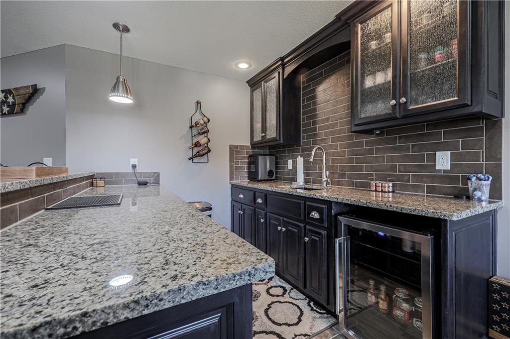 Discover this beautifully maintained Reverse 1.5 Ranch tucked at the end of a quiet cul-de-sac in the highly desired High Point at Creekmoor community. Perfectly move-in ready, this home offers the ideal blend of comfort, luxury, and convenience, all within walking distance to the community pool, clubhouse, and championship golf course. Step inside to an open, inviting floorplan that everyone wants, featuring expansive windows, abundant natural light, and seamless flow throughout. The main level includes a front bedroom & full bath, a dedicated dining area, & a spacious great room with a cozy fireplace. Walk out to the covered deck with stairs leading to the covered patio below, perfect for relaxing or entertaining year-round. The stunning kitchen features quartz countertops, a walk-in pantry, Bosch stainless steel appliances, a gas cooktop, a large island with built-in outlets, & soft-close cabinetry. Every detail is thoughtfully designed. The primary suite is a true retreat, offering a spacious bedroom & a luxurious bathroom with granite double vanities, a beautiful tiled shower, and ceramic tile floors. The large walk-in closet connects directly to the laundry room & mudroom for exceptional convenience. The walkout lower level is fully finished & ready for fun, featuring a generous family & recreation room with a wet bar and mini fridge, a fitness space, two additional bedrooms, & a full bath with tub and shower. Additional upgrades include pre-wired surround sound, a wood fence with a gate that provides easy access for mowing, and added peace of mind. Living in Creekmoor means enjoying resort-style amenities, including a 108-acre fishing lake, biking and hiking trails, playground, clubhouse with restaurant and fitness center, pool, tennis, and an award-winning golf course. This home offers the lifestyle everyone is searching for: open, bright, and beautifully designed, just steps from all the best that Creekmoor has to offer.