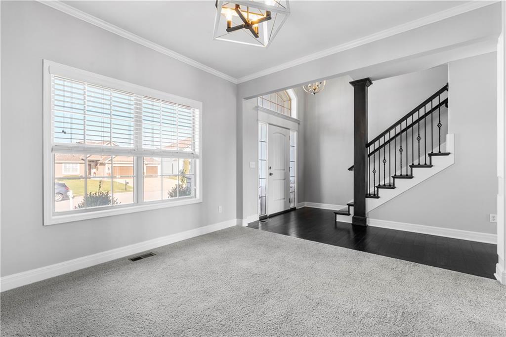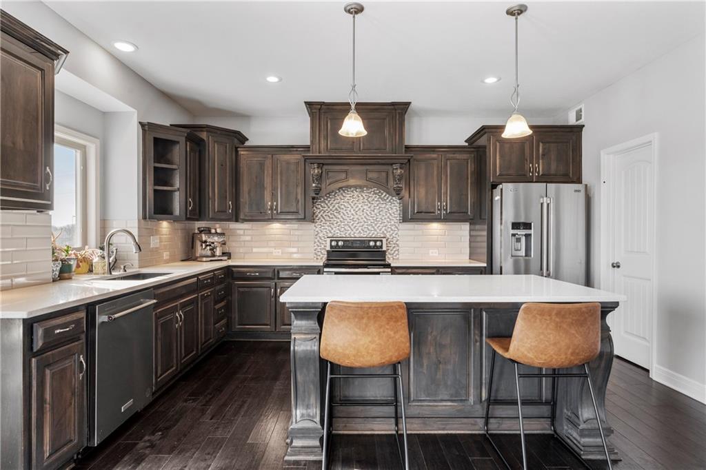 WELCOME HOME to this beautifully updated, move-in ready Staley Meadows gem! Ideally located just 0.3 miles from Anne Garney Park and its 2-mile nature trail, 1 mile from Staley High School and Bell Prairie Elementary, and only 5 minutes to Staley Farms Golf Club. This 4-bed, 3.5-bath home sits on a street heading down into a quiet cul-de-sac. Recent updates include a FRESHLY painted interior (11/19), professionally cleaned carpets (11/20), and a full interior deep clean (11/21). Major mechanical updates completed in April 2025 include a new furnace blower motor, new heat pump, and new A-coil evaporator, ensuring worry-free ownership. Inside, enjoy hardwood floors throughout the living room, quartz countertops, new light fixtures in the living and dining rooms, new dishwasher, new refrigerator, and new microwave (all replaced in 2024, receipts attached). A spacious Great Room with abundant natural lighting. The layout includes a convenient laundry room off the primary suite, which features a soaker tub, tiled shower, and a generous walk-in closet. Outside, the home offers an extended half-oval patio—perfect for entertaining, a fully fenced backyard, and an easy walk across Shoal Creek Parkway to the neighborhood pool. Located in the highly sought-after Staley School District and just minutes from KC International Airport, this home combines comfort, convenience, and extensive updates—ready for its next owner! ***Seller of home is licensed agent - Thomas Calia