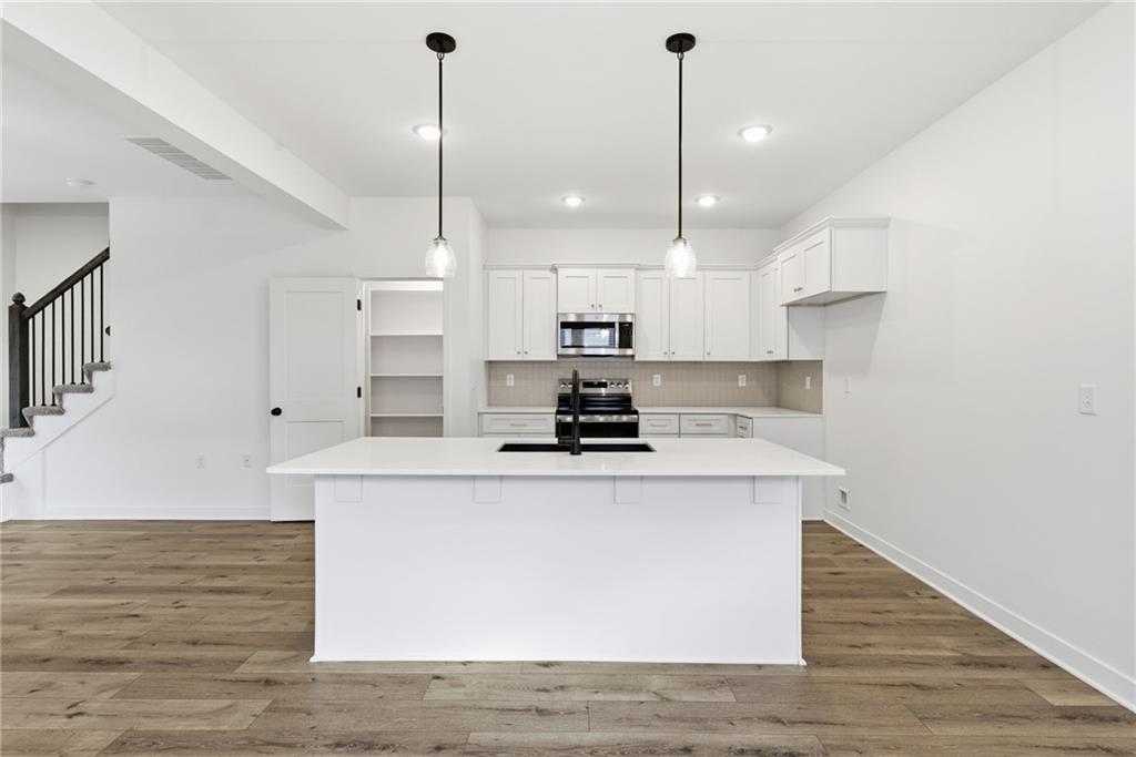 This beautiful 3-bedroom, 2.5-bathroom new construction home showcases a sleek modern design with a well-equipped kitchen featuring a large island with quartz countertops, stainless steel appliances and a spacious walk-in pantry. The main ensuite includes vaulted ceilings, a generous walk-in closet with built-in shelving, and a stylish attached primary bath. Enjoy convenient ground-level access to the rear patio and fully landscaped yard—perfect for pets, entertaining, and family activities. Spacious two-car garage offering plenty of room for parking and storage. Home is currently under construction; pictures are of a completed build and similar floor plan. Finishes and colors may vary. Estimated completion date is Dec 15.