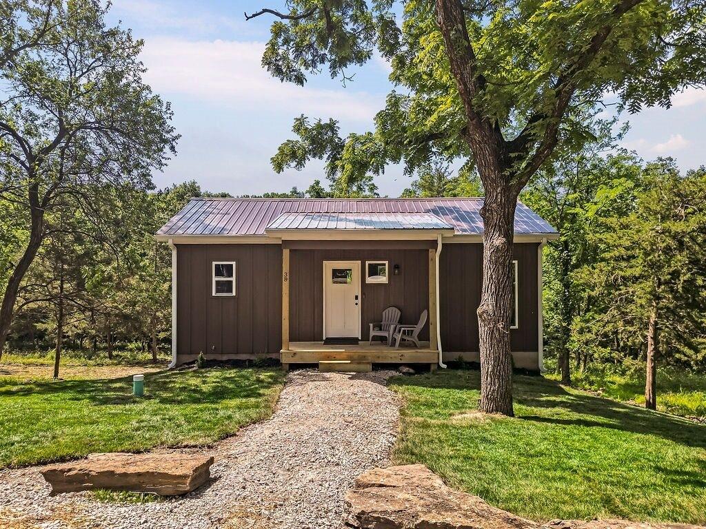 Perfect 2 bedroom, 2 bathroom cabin at Linn Valley Lakes. Whether you're looking for a weekend retreat/vacation home, a cozy place for retirement or you just wat to enjoy the beauty of nature - this has it all. Newly built, with an excellent maximization of space. The main floor features a bedroom, bathroom, full and efficiently designed kitchen and a combination living/dining area. Step out on the 10 x 12 deck and enjoy the breath taking views. Lower level features a den/study, second bedroom and bathroom as well as laundry facilities. Walk out from from this level and enjoy a concrete patio perfect for entertaining. This unit would also be an excellent investment opportunity. With the World Cup in Kansas City next year, this could be a highly desirable location. Enjoy all the amenities of this gated community, including boating, swimming, golfing, tennis, walking trails, disk golf, mini golf, and fishing. Additional details can be found at Linnvalleylakes.com.