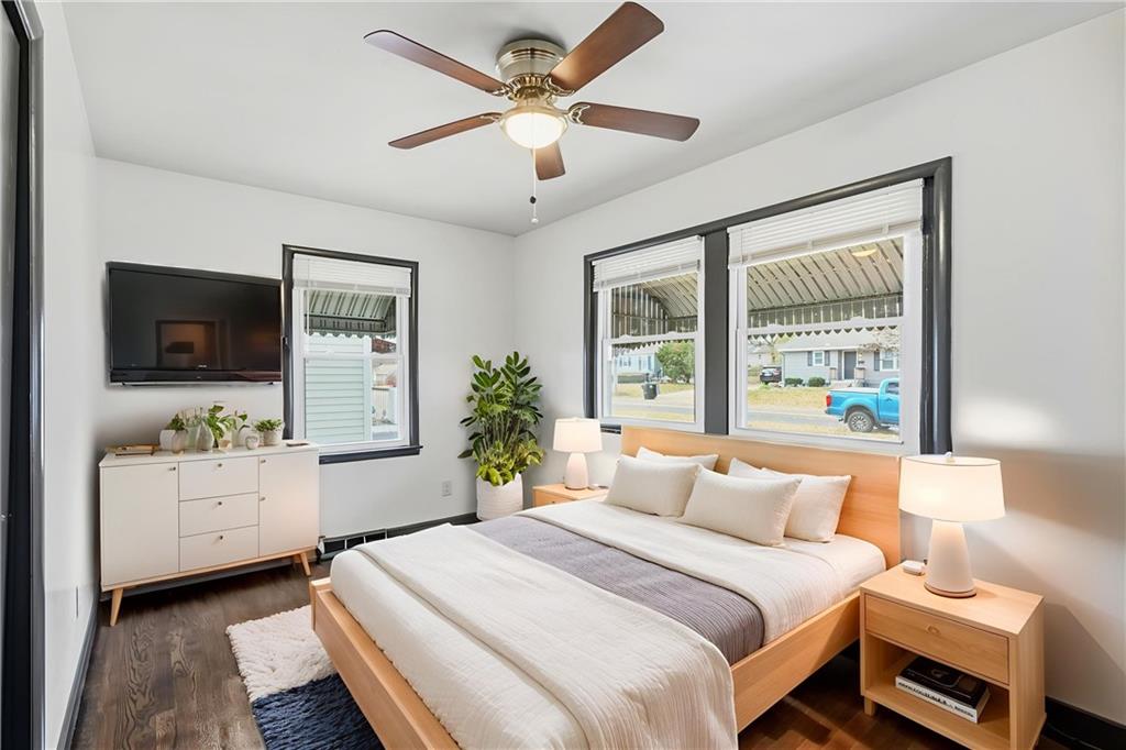 Stylishly renovated one-level living RANCH with a full, finished basement on a large, fenced lot just minutes from the stadiums! The open main level feels roomy and perfect for entertaining with an easy flow from the dining room to the fresh kitchen to the cozy living area with fireplace. Through a sliding glass door from the living room is a spacious all-seasons room where you can enjoy views of the scenic backyard year round. The beautiful kitchen is complete with granite countertops and new stainless steel appliances, and gleaming hardwood floors and a neutral color scheme throughout are the perfect canvas for you to make this space your own. Three bedrooms and a completely redone full bath complete the main level, and downstairs there is plenty more living space to enjoy in the full, finished basement. A rec area, home office, second living space and stunning second full bath offer plenty of space for remote workers, hosting games nights, a sprawling guest suite, or whatever best suits your lifestyle. The large, fenced backyard with shed is ready for backyard barbecues, gardening, playing outside and more. Welcome home!