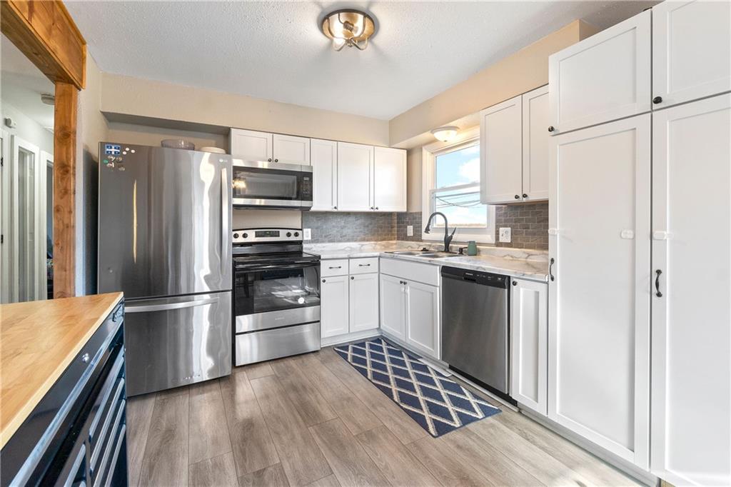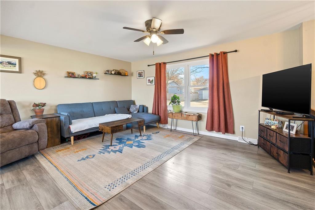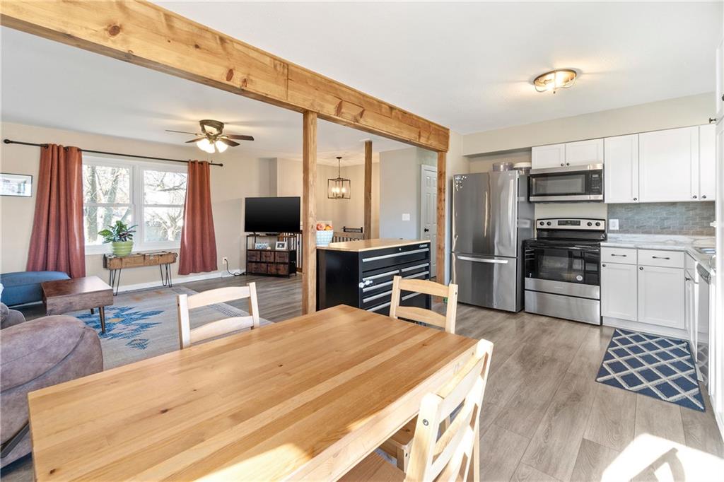 Move right into this well loved, beautifully updated split-level home featuring an open floor plan, fresh flooring, modern finishes, and warm wood accents throughout. The bright living room flows into the dining area and updated kitchen with stainless steel appliances, white cabinets, stylish backsplash, and a movable island. Enjoy three comfortable bedrooms and a fully updated bath on the main level, plus an additional living space/bedroom and half bath downstairs—perfect for guests, an office, or a playroom. Relax or entertain on the spacious deck overlooking a fully fenced yard with no neighbors behind you. Peaceful views and plenty of room to play!