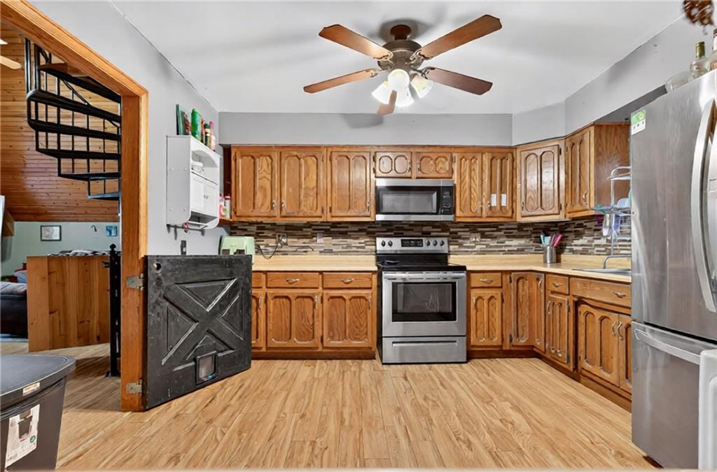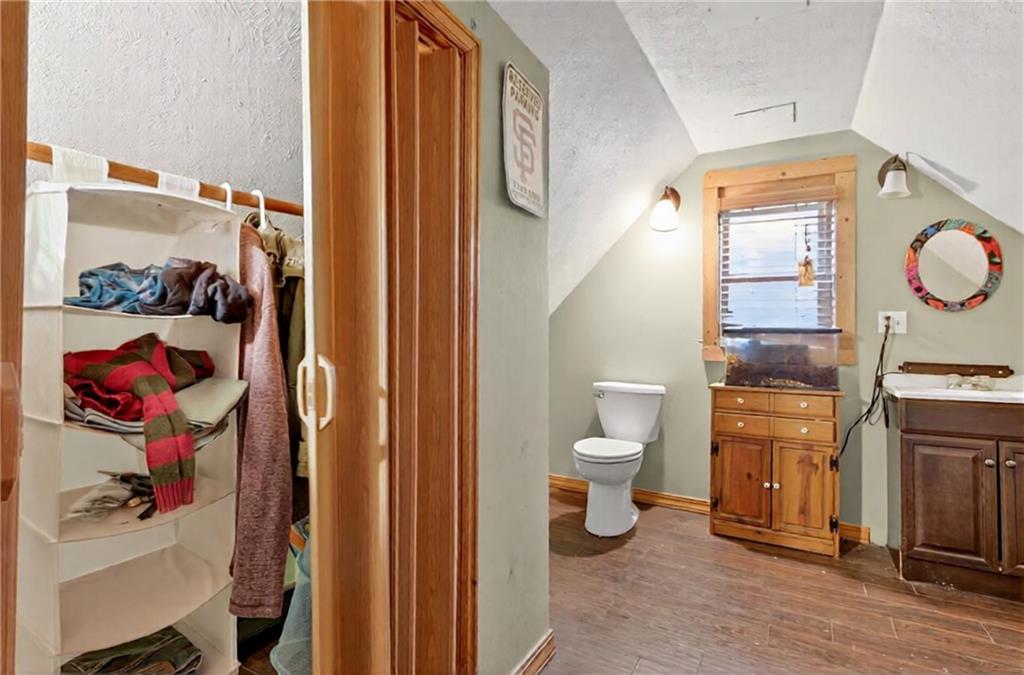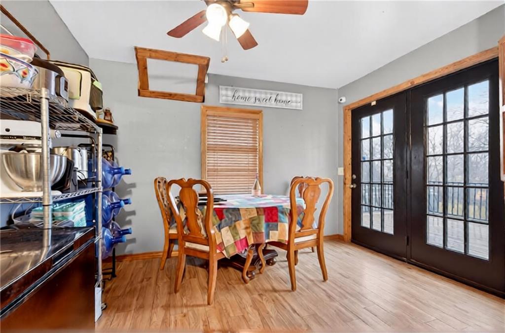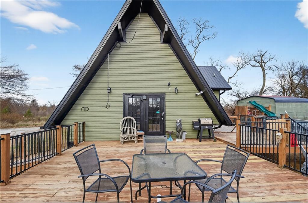 Experience A-frame charm combined with modern improvements across this 1.9-acre property that includes a full guest house and inviting outdoor amenities. A great setup for multi-generational living or extra space. Located in a convenient rural corridor between Nevada, Missouri and Fort Scott, Kansas. The primary A-frame style home, built in 1992, offers 1,484 sq. ft. with a warm and inviting loft layout. As you enter, you’re greeted by a striking vaulted wood ceiling and an open living space filled with natural light. The kitchen sits just off the living room and includes updated appliances, making daily living and entertaining a breeze. This home offers 2 bedrooms, 1 non-conforming bedroom, and 2.5 bathrooms. The main-level primary suite provides comfort and privacy, while the finished walkout basement adds versatility for additional living space, guests, or hobbies. Step outside and enjoy a large deck overlooking the above-ground pool, plus a charming firepit area complete with swinging benches — a perfect setting for quiet evenings or gathering with friends and family. The acreage features peach trees, pear trees, grape vines, and blackberry bushes, adding to the peaceful rural appeal.An added bonus is the 840 sq. ft. guest house, offering 2 bedrooms, 1 non-conforming bedroom, and 1 bathroom — ideal for guests, extended family, or potential rental income. Major improvements in recent years include: Central heat & air, Newer metal roofs on both homes and all outbuildings, Newer siding on both homes,Newer windows and doors, Newer flooring, Newer well water filtration system. And if it sweetens the deal…the owners are even willing to leave the chickens — cluck, cluck! Important Note: The sellers lead a very busy lifestyle. To help buyers envision the layout and potential, some rooms have been virtually staged. The virtual staging is simply provided for convenience and visualization.