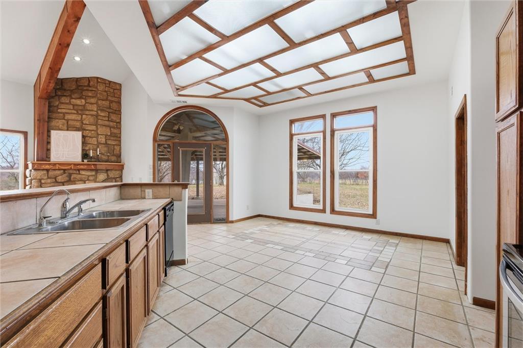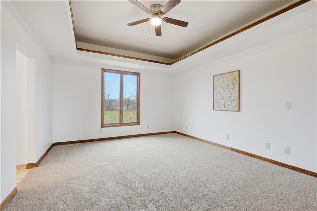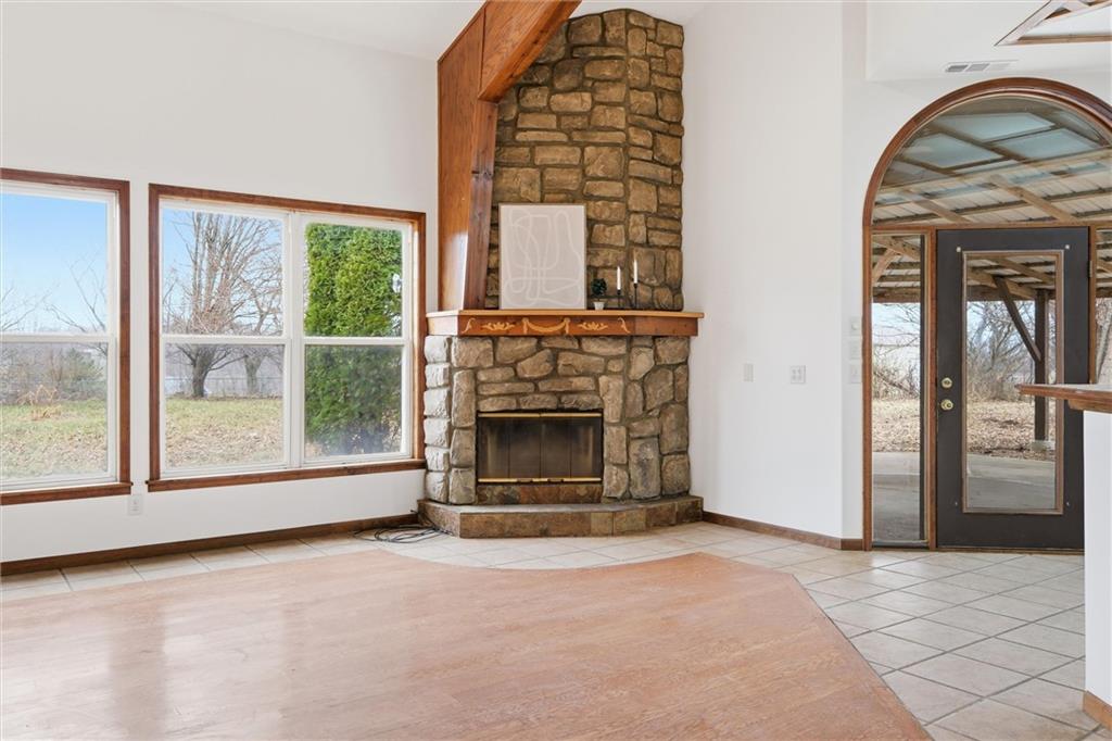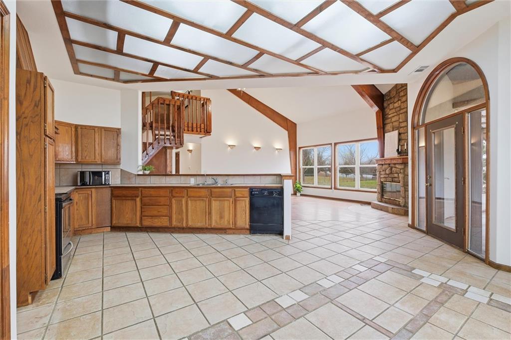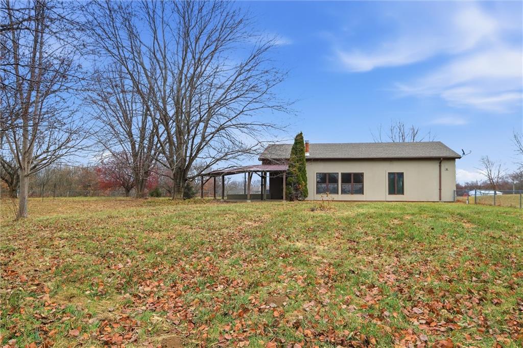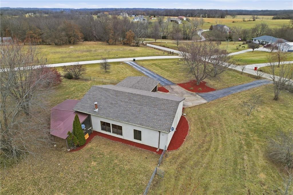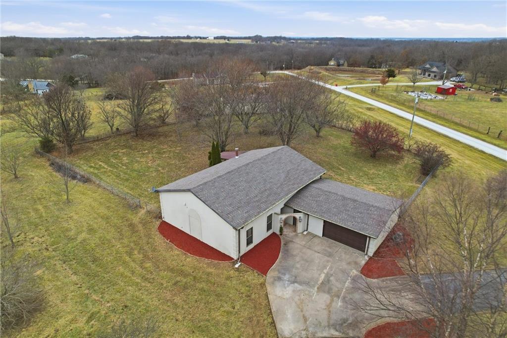 Nestled on a picturesque 3-acre corner lot in Johnson County, this beautifully loved ranch offers space, privacy, and a seamless connection to the country. The open floor plan features vaulted ceilings, stunning hardwoods and tile in the main living areas, and an abundance of natural light throughout. Fresh paint and new carpet make the home feel move-in ready, while the spacious loft above adds flexibility for a home office, guest space, or retreat. With three bedrooms and two full baths, the layout is both functional and comfortable. Step outside to the large covered patio perfect for outdoor living, entertaining, or creating your dream outdoor kitchen, all while enjoying peaceful views of the surrounding landscape. A circular drive welcomes you home, complemented by an attached two-car garage and a large outbuilding ideal for equipment, hobbies, or extra storage. From the setting to the updates, there’s truly so much to love and enjoy in this special property!