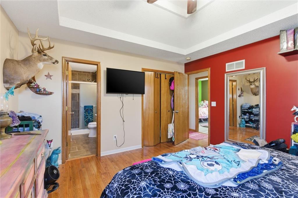 Beautiful split-entry home tucked at the end of a peaceful cul-de-sac in Greenwood, Missouri. Step inside to a spacious living room with hardwood floors and vaulted ceilings, flowing seamlessly into the open kitchen and dining area. The main level features a comfortable primary suite, along with two additional bedrooms and a full bath. Downstairs, you’ll find a tastefully finished basement with a full bathroom—ideal for a second living area, guest suite, or recreation room. Outside, enjoy a large fenced-in yard perfect for pets, play, and relaxing evenings. A convenient two-car garage and a welcoming layout make this home as functional as it is charming.