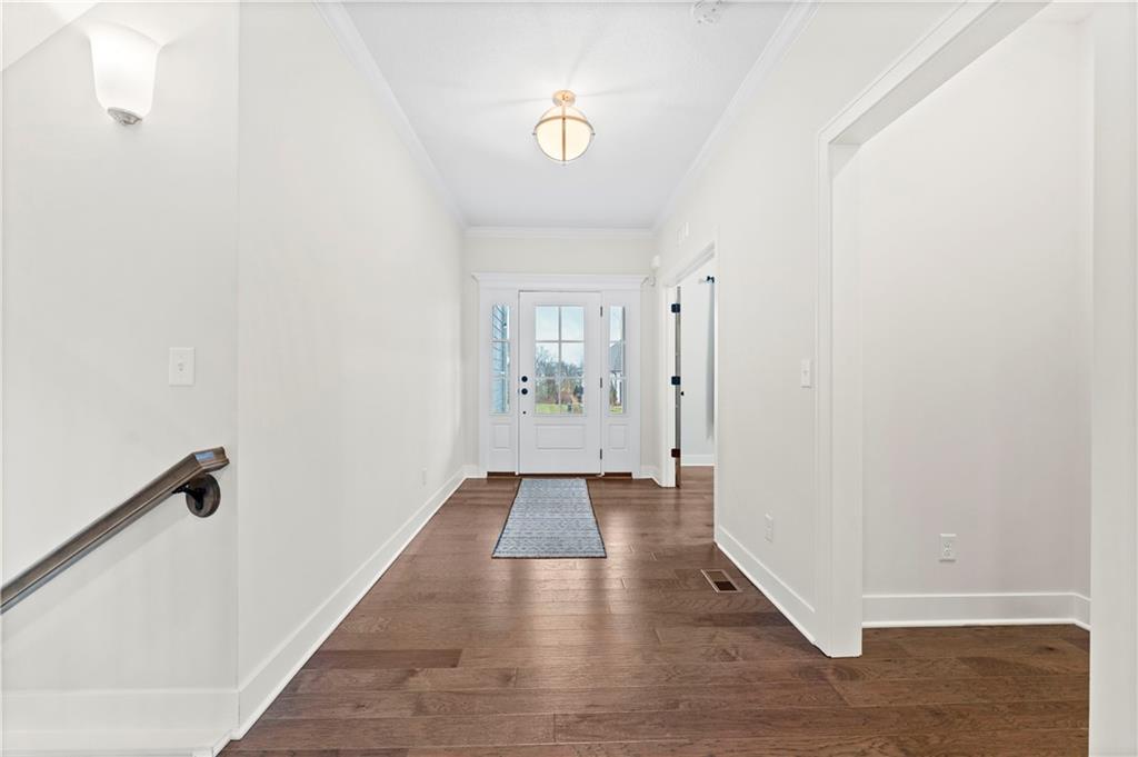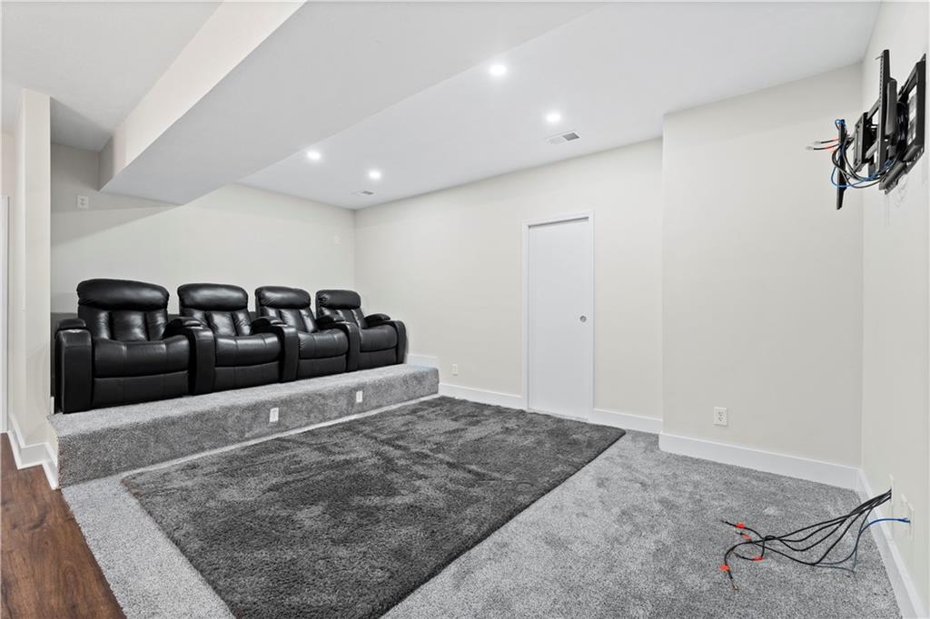 Stunning 6-bedroom, 5-bathroom home with ample space and luxurious features throughout. The main level offers a versatile guest bedroom or office, while the second floor boasts 4 additional bedrooms, including a spacious primary suite with a large bathroom and oversized closet. The finished basement is an entertainer's dream, featuring a theatre room, wet bar, home gym, and a bonus bedroom with a full bath. Outdoors, enjoy the screened-in patio, large concrete patio with built-in fire pit, perfect for gatherings. Centrally located with easy highway access and just a short walk or bike ride to nearby shopping. The Reserve at Woodside Ridge offers a convenient location to highway access, shopping centers, and the Rock Island Trail. The amenities complex features: a club house, pool, pickleball court, hammock garden, and playground area. The HOA dues also include trash, recycling, and paved walking trails.