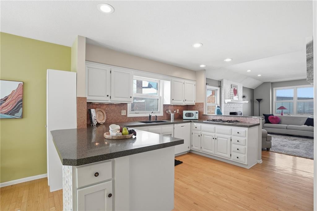 Beautiful maintenance-free townhouse in a quiet West Lawrence neighborhood. Rare end-unit offers lots of windows & sunlight. Spacious open floor plan with hardwood floors and nicely updated kitchen & appliances. Main floor primary bedroom and 2 more bedrooms & bonus room upstairs. Amazing oversized deck that is surrounded by large shade trees. Pella windows with built-in blinds.