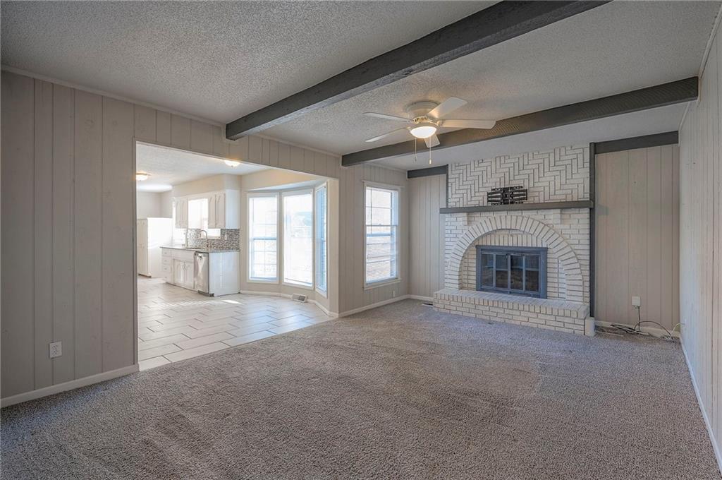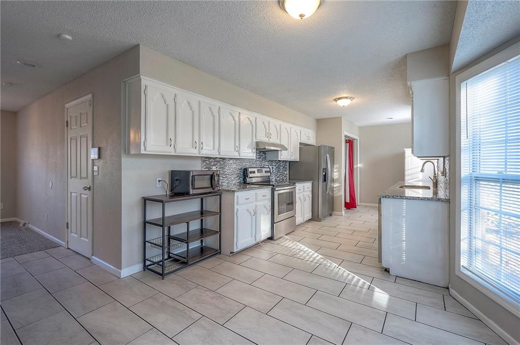 Welcome to this gorgeous ranch home in Belton! This home features 3 bedrooms and 2 baths, offering fantastic curb appeal with brick trim and a very bright, open layout that feels warm and inviting from the moment you walk through the front door. Relax and enjoy time with family in the huge family room, centered around a charming brick fireplace—such an ideal gathering space. You’ll love the large living room and spacious formal dining room, perfect for entertaining family and friends. The kitchen includes stainless steel appliances, granite countertops, painted cabinets, and tile flooring that flows through the dining area, entry, and both bathrooms for a clean, cohesive look. The master bedroom features an updated bathroom with granite countertops and a large walk-in closet. The second and third bedrooms are generously sized, and the second full bath has also been upgraded with beautiful granite countertops. Carpet in the main living areas and bedrooms provides comfort and consistency throughout. The full, unfinished basement is massive and offers excellent potential—use it for storage or finish it to add additional living space. In the backyard, you’ll enjoy a spacious fenced yard with mature trees and a patio which is ideal for entertaining or relaxing on warm evenings. The home is conveniently located near shopping, dining, and highway access. Some TLC may be needed depending on buyers vision. (Upgrade allowance provided at this price point. Visit with listing agent for information.)