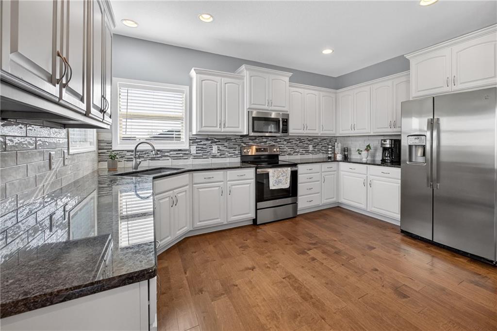 Welcome home to this spacious 4-bedroom, 3-bathroom property in the Basehor-Linwood School District. Enter into an inviting open-concept layout and abundant natural light throughout. The kitchen features granite countertops, stainless steel appliances, a pantry, and generous cabinet space—flowing seamlessly to a large deck that’s perfect for grilling or relaxing. The main level also includes the first living space, convenient laundry access, and a primary suite complete with a walk-in closet, double-sink vanity, and separate tub and shower. Downstairs, a second living area provides flexibility for entertaining, work, or play. A 3-car garage adds valuable storage and room for hobbies. Located just blocks from the Basehor Community Library and minutes from highway access, this home blends everyday convenience and updated living.