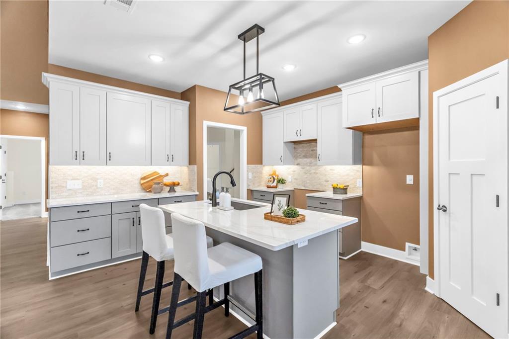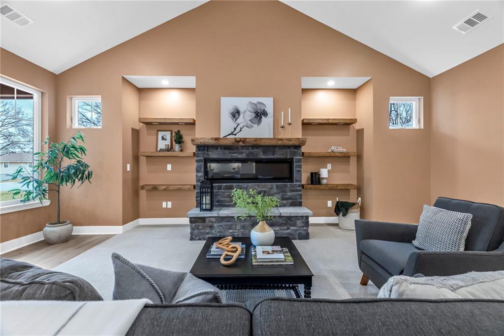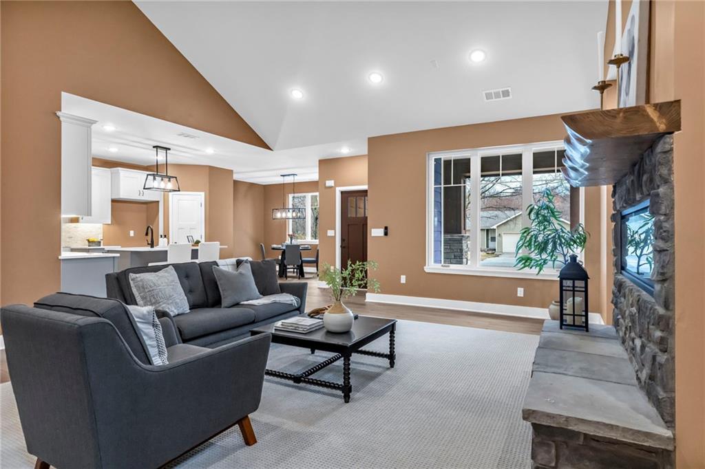 New Build!! This floorplan is highly functional for those seeking true main-level living. Craftsman-style home offering over 2,400 sq ft on the main level. Open-concept living area with vaulted ceiling, beautiful built-ins, a live-edge wood mantle, and a fireplace. The kitchen features custom cabinets, granite countertops, an island, and a formal dining room. The spacious primary suite includes a walk-in closet and a large bathroom. Two additional bedrooms and a second full bath are also located on the main level. The upper-level bonus suite includes a bedroom, full bathroom, and an family room—ideal for guests or flexible living needs. Additional features include a two-car garage, large driveway for off-street parking, and a covered front porch. The home sits on a large lot. This location offers easy access to Fort Leavenworth and to the city.
