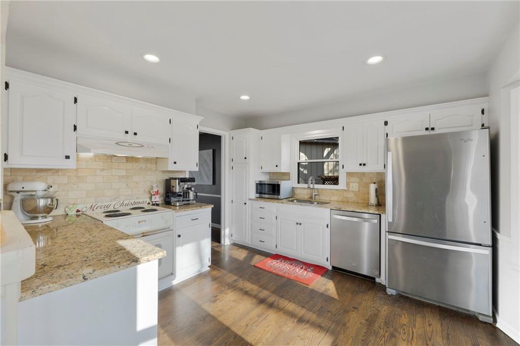WELCOME HOME! Step into this beautifully maintained split-level home perfectly situated on a generous 0.45-acre lot, offering the ideal blend of space, comfort, and convenience. The main level has beautiful wood floors. The kitchen with pantry and granite counters opens up to the family room where you can cozy up to the brick accented fireplace on cool days! Primary bedroom features updated private bathroom. Three additional generous sized bedrooms and a full bath finish this level. Unfinished lower level is awaiting your design ideas. Amazing backyard with matured trees for privacy and a huge patio for entertaining family and friends. Close to historic Overland Park, highways, shopping and restaurants.