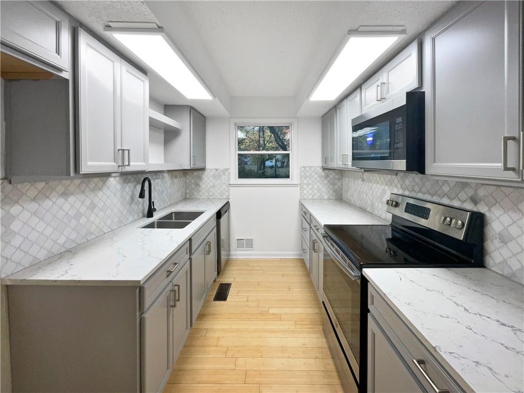 Welcome to this charming property that boasts a cozy fireplace, perfect for those chilly evenings. The neutral color paint scheme provides a calming ambiance throughout the home. The kitchen is a chef's dream with an accent backsplash and all stainless steel appliances. Step outside to enjoy the deck and patio, perfect for entertaining or simply relaxing. The fenced in backyard ensures privacy outdoor living space. The home has been freshly painted inside, adding to its appeal. This property is a must-see for those seeking a comfortable and stylish home. Included 100-Day Home Warranty with buyer activation