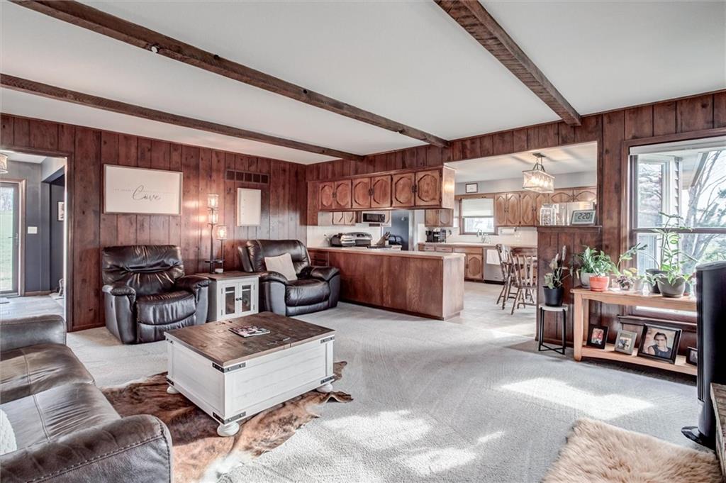 Don’t miss this beautiful property situated on 5.56 acres! It features two large ponds tucked away in a wooded area at the back of the property, along with a swimming pool and a picnic/bonfire area located behind the outbuildings. This raised ranch home offers 3 bedrooms on the main level and a non-conforming 4th bedroom in the basement, all with new paint and carpet. Laundry has conveniently been brought upstairs and is hidden behind a barn door on the main level. The main level also includes a formal living room and a dining room, tastefully separated by a barn door. You’ll also find a spacious family room with a beautiful brick fireplace, 2 full bathrooms, and a warm, country-style kitchen with plenty of cabinets and a cute breakfast nook overlooking the deck and fenced yard. The lower level has an entirely separate living quarters, complete with a second kitchen, a large family room with a wood-burning stove, a full bathroom, and an office area. A small 9' x 12' shed sits just outside a fenced area for dogs. The property also includes an approximately 40' x 60' barn with partial concrete flooring and electricity, plus another building positioned to overlook the ponds. With ample living space, multiple outbuildings, and stunning outdoor features, this property provides exceptional versatility for families, hobbyists, or those seeking peaceful rural living. Schedule your showing today to see its full potential.