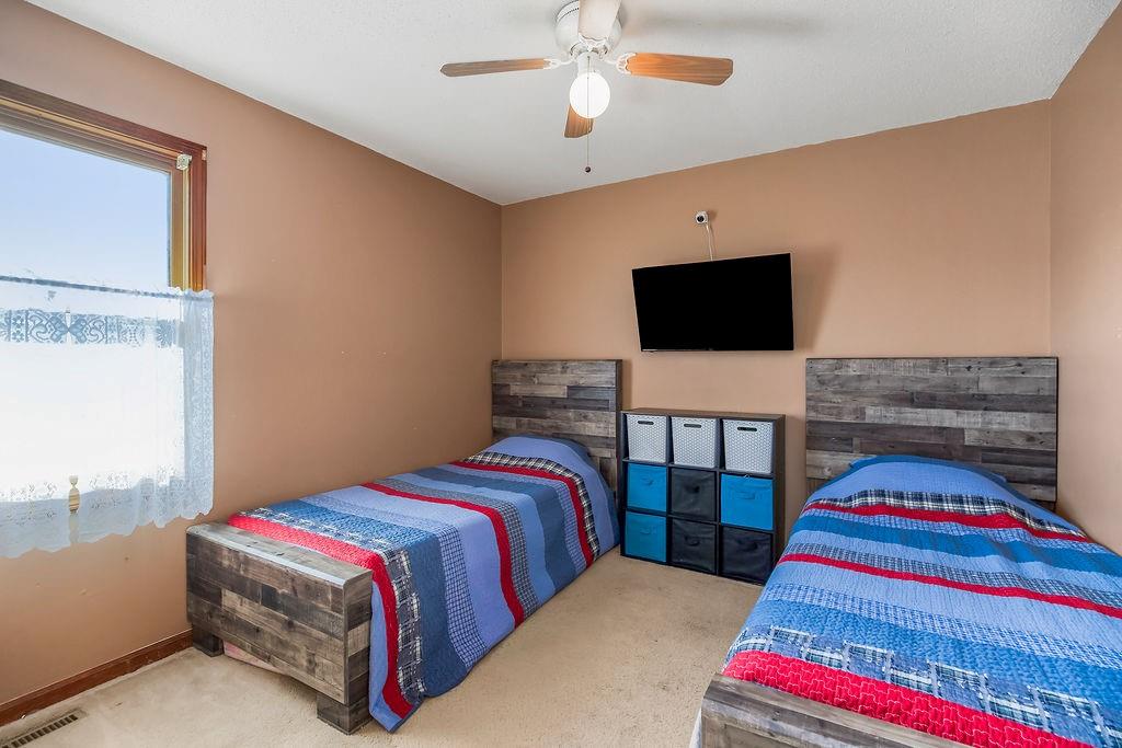 Welcome to this cozy home featuring brand-new appliances, a new furnace, and an upgraded AC unit all completed this year. Inside, you’ll find hardwood floors, vaulted ceilings, and a spacious kitchen with newly added solid-surface countertops, stainless steel appliances, and a deep sink. All three bedrooms are upstairs with carpet throughout, and two offer walk-in closets. The primary bathroom has a shower, while the hall bath includes a shower and tub combo. The basement provides a concrete-floored family and laundry area, plus a sub-basement for extra storage. Step outside to enjoy the expanded covered deck overlooking the fenced yard. The front of the home features a wooden deck with railing and mature trees for added appeal. Conveniently located near major highways, shopping, and restaurants. No HOA!