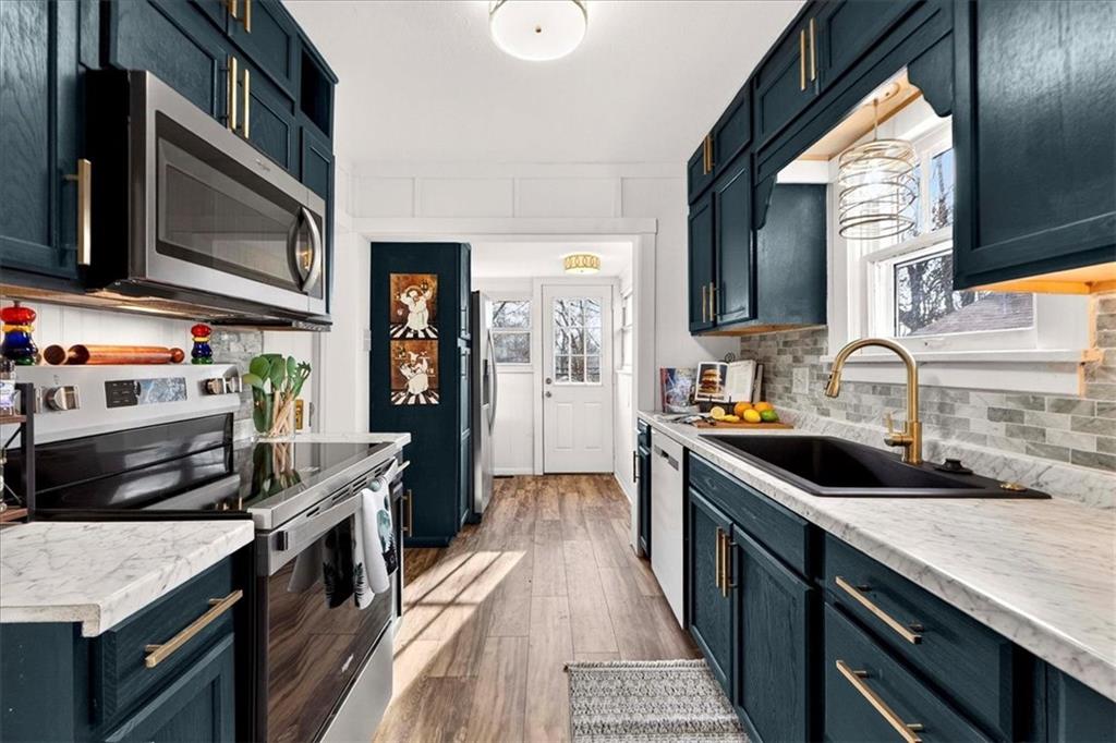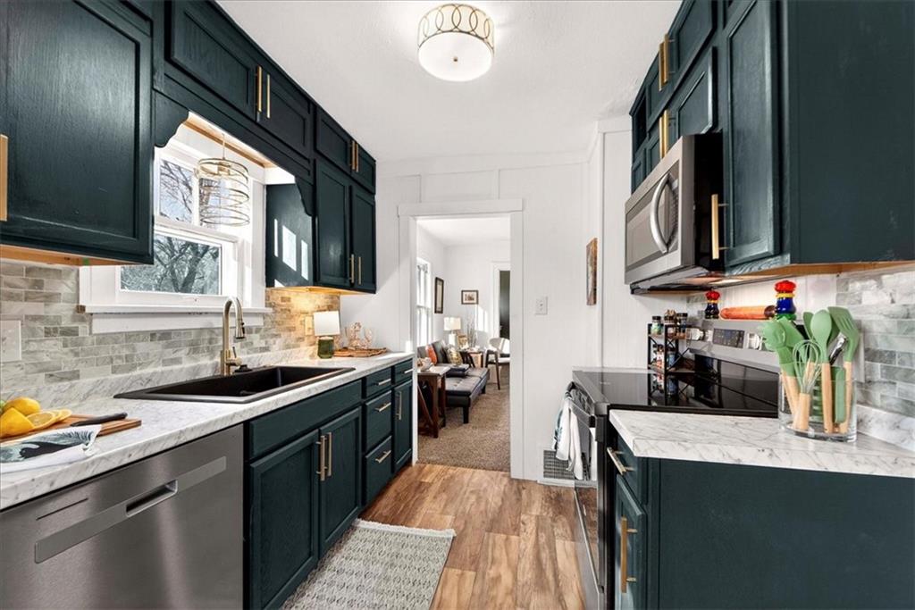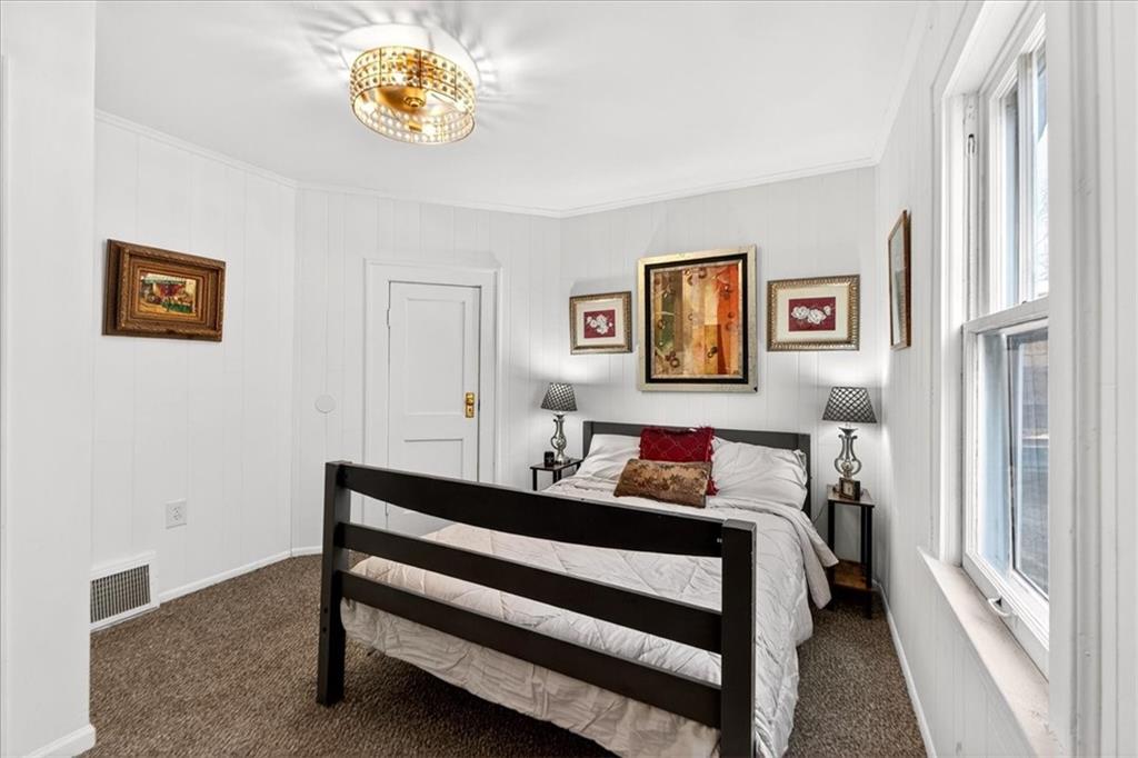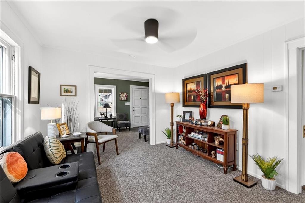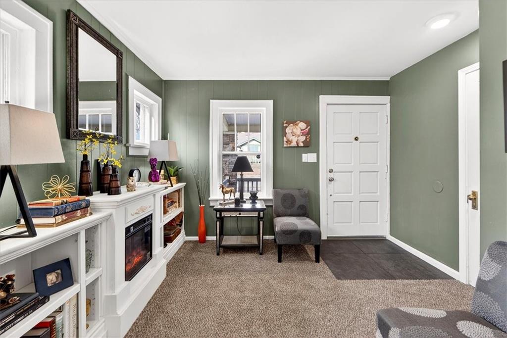 This renovated 3-bedroom home with a finished attic bonus room is bright, open, and ready for its next owner. The main living area features a new electric fireplace with built-ins, new flooring, and upgraded storm windows that bring in great natural light. The kitchen has been fully updated with new cabinets, sink, fixtures, waterproof flooring, and all-new appliances that stay with the home. The bathroom includes a new tile floor, vanity, and toilet. Additional updates include a new high-efficiency HVAC system, professionally cleaned air duct vents, new hot water tank, new gutters, new breakers, outlets, light fixtures, and a new back deck. New carpet runs throughout the home, and a dedicated laundry area has been added in the basement. A new back door and storm door, exterior paint, gutters, and gravel driveway complete the exterior improvements. This home also qualifies for 0% down payment programs, creating a strong opportunity for buyers. Homes with this level of work and pricing do not last!